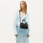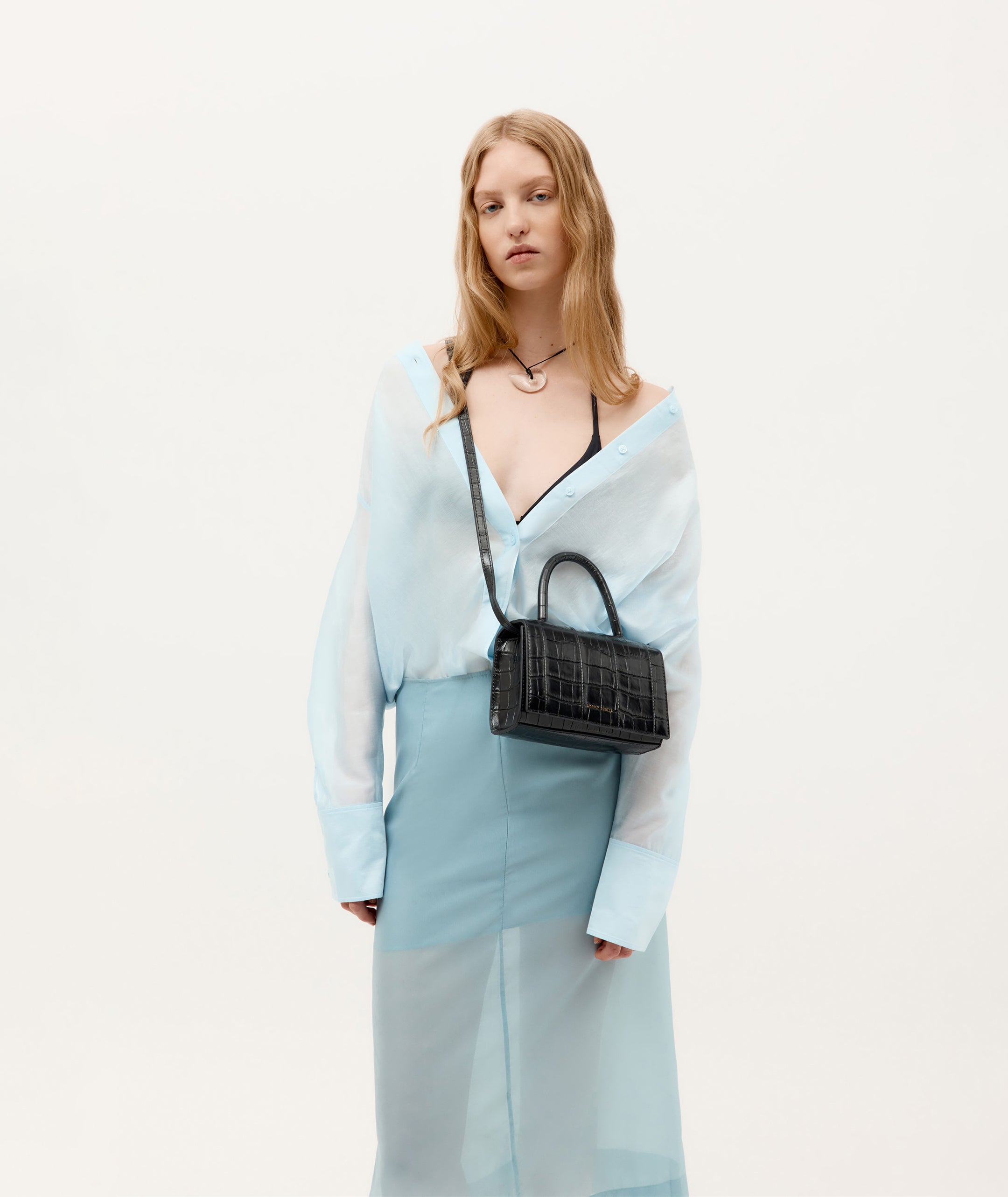 Mr Jagger is a compact mini bag, crafted from hand-painted croc-embossed Calf Leather. He features a fixed top handle and magnetic clasp closure, with a detachable, adjustable strap for versatile wear.