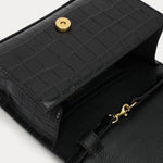 Croc Embossed Calf Leather trimmed with Calf Nappa, REACH Certified Cotton Lining, Brass Hardware.