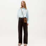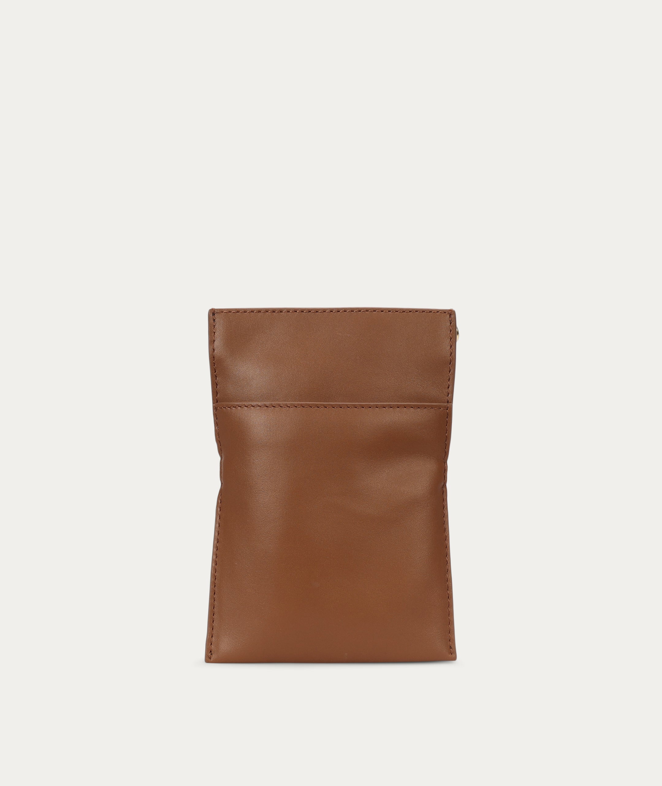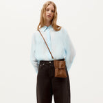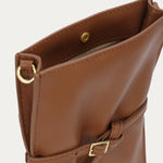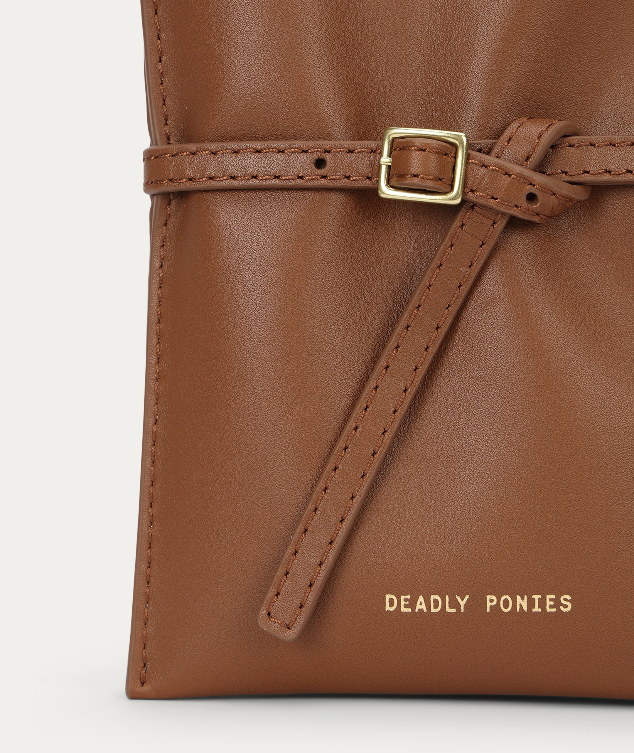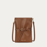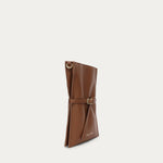 Pouchette in Driftwood features a compact silhouette with leather strap detailing and a front buckle accent. A detachable strap offers versatile styling, while a back slip pocket keeps essentials within easy reach.