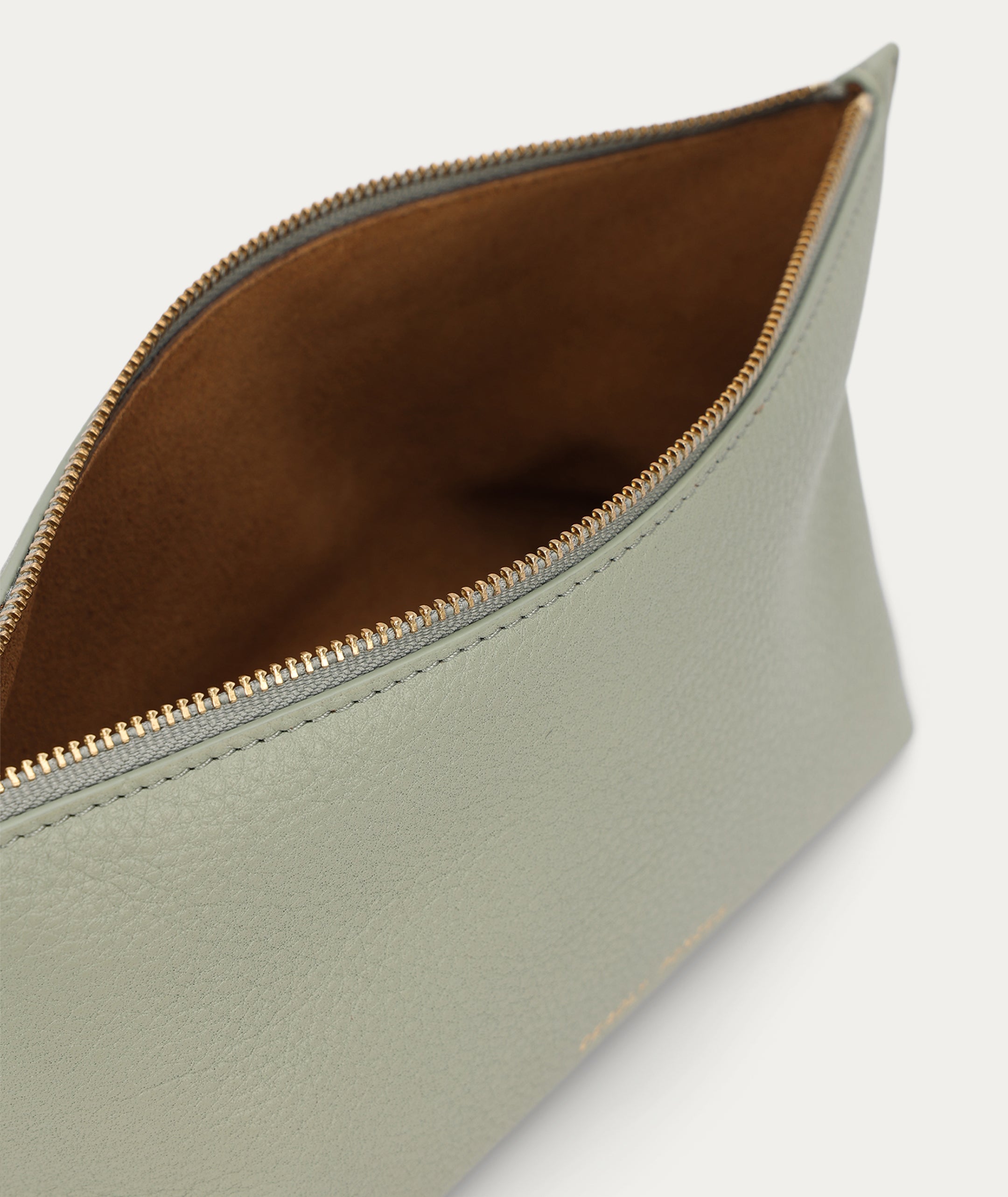 Roomy and refined, Poucher Grande in Kina is crafted from buttery-soft Calf Nappa with a Calf Suede interior. He’s finished with a zip closure and brass hardware.