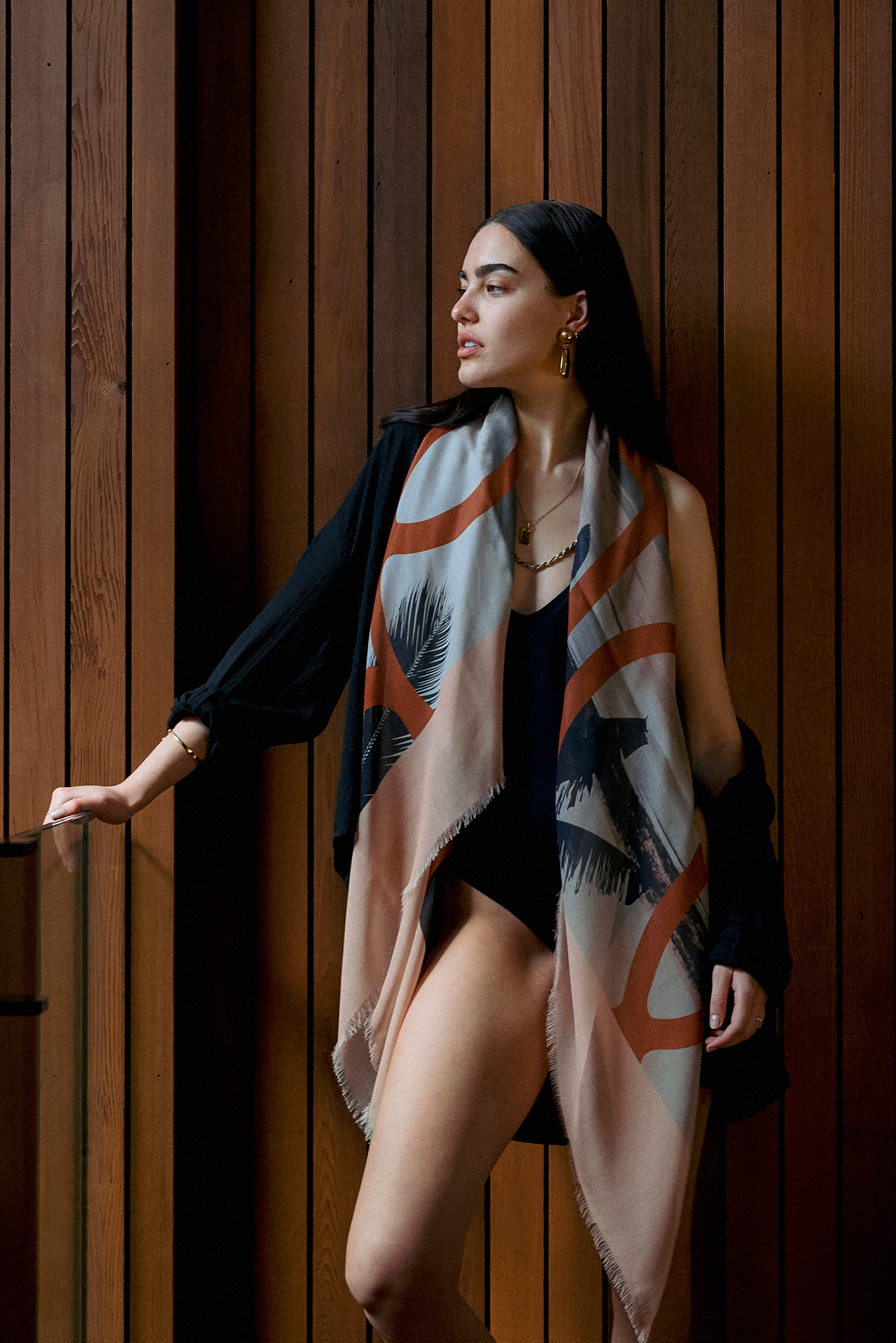 135 x 135 cm | 15% silk 85% modal | Dry clean only