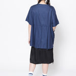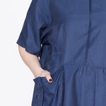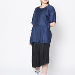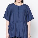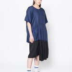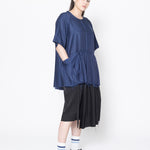 Short sleeve tee in a soft cupro cotton twill, designed for an oversized fit. Front features round bound neck, wide pleating on one side and a large pleat pocket on the other, roomy raglan sleeves and french seam details. This tee is pre-styled ready to go, worn with the Reality Skirt.