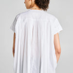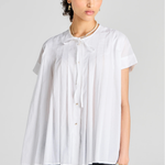 Designed for those warm days when you need both style and comfort, the Furrow Sleeveless Shirt is made from breathable organic cotton. Offering a relaxed fit and subtle pleated details, making it perfect for layering or wearing solo. The refined gold-tone buttons down the middle lead to a delicate bow at the neckline, adding a feminine touch to this versatile shirt.