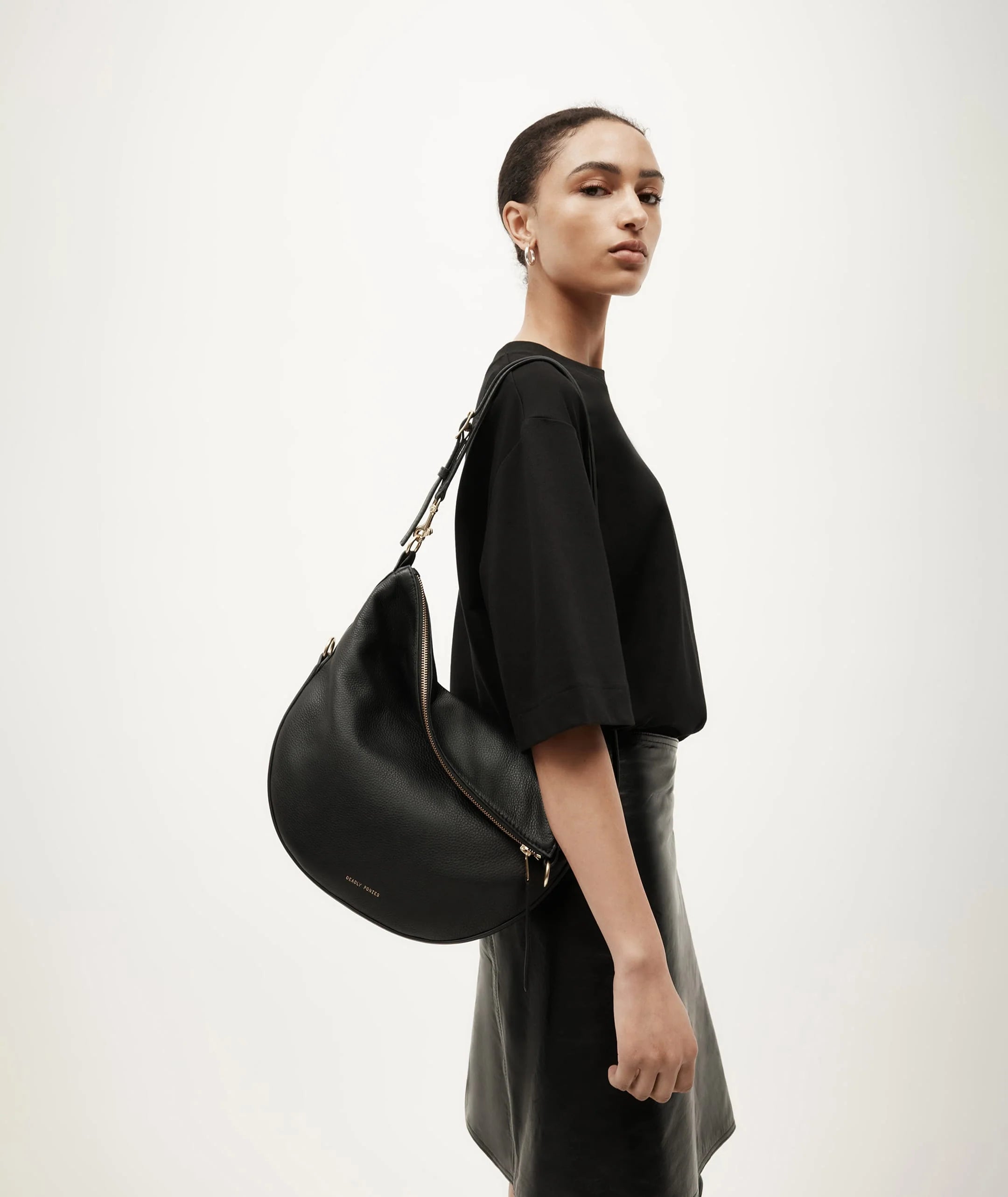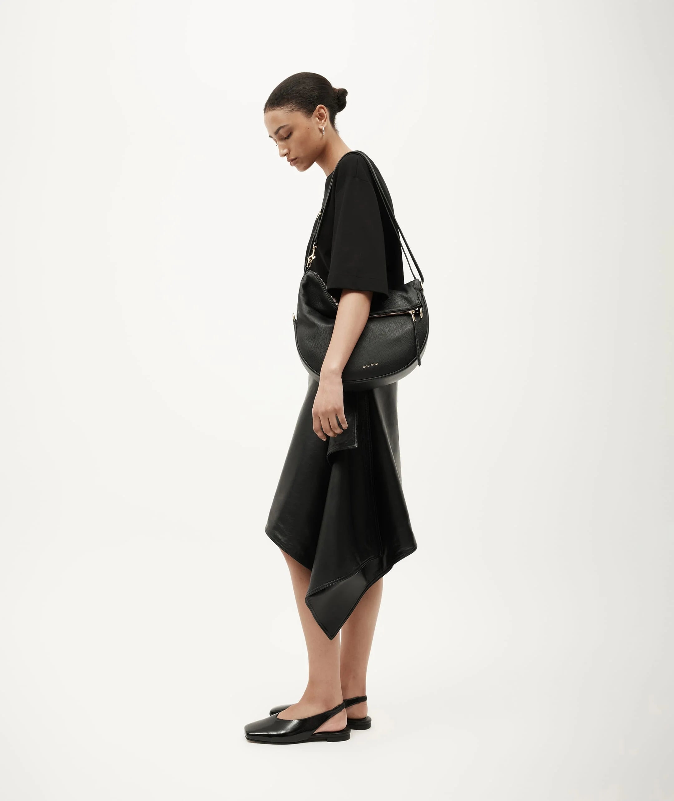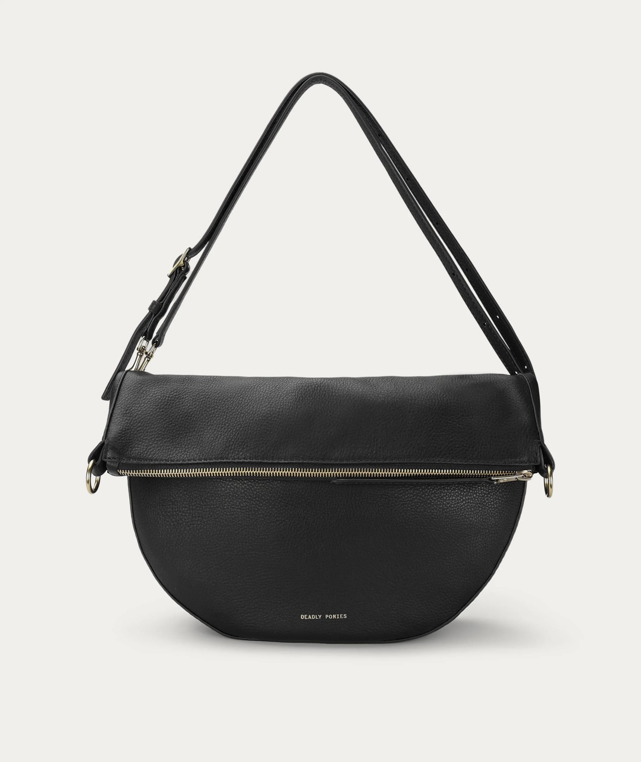 Mr Leopard in Black is crafted from supple LWG-certified Calf Nappa. This versatile silhouette can be worn folded, asymmetrically, or fully extended as a sling. He offers seamless options for crossbody or shoulder wear.