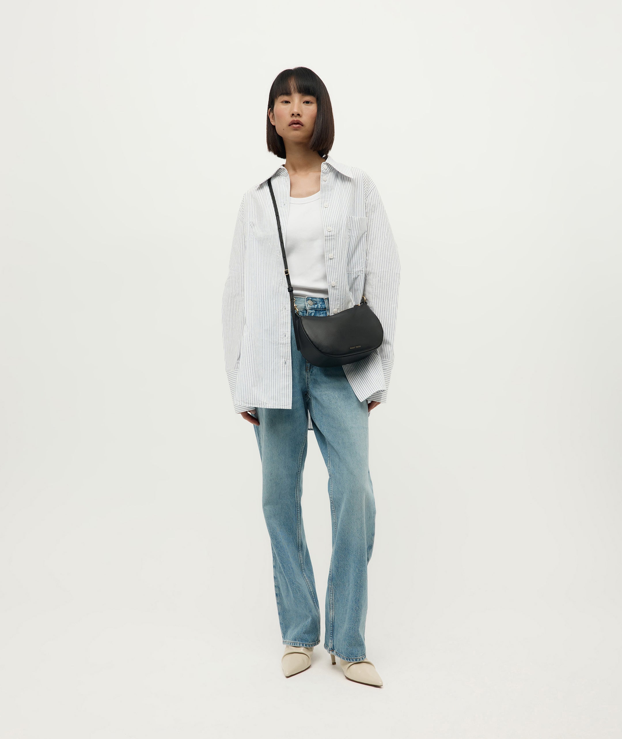 Petite in stature, Mr Sling Micro in Black is crafted from buttery Calf Nappa. A detachable top handle and adjustable strap offer versatile styling, while internal pockets and a brass zip closure keep essentials secure.