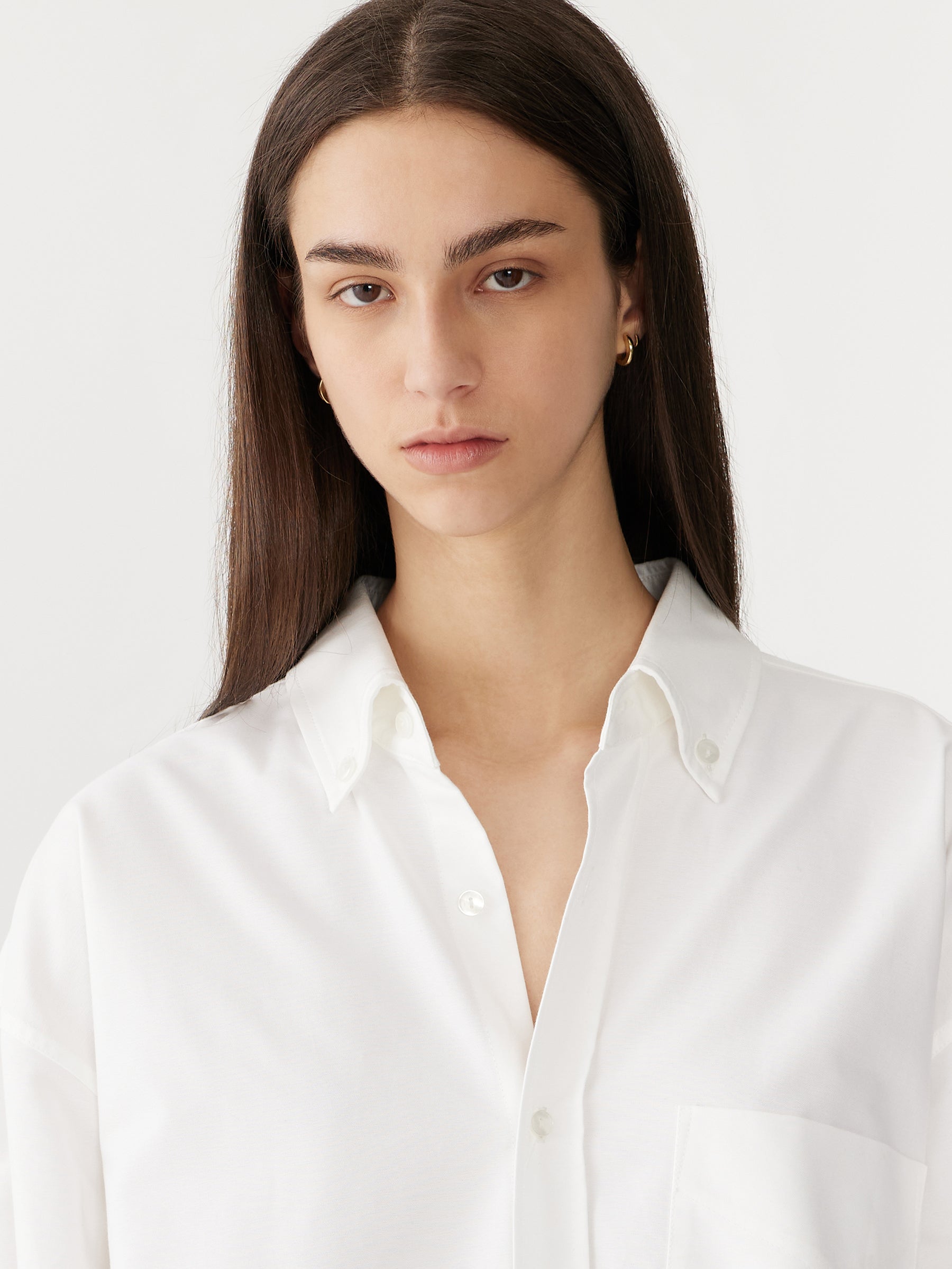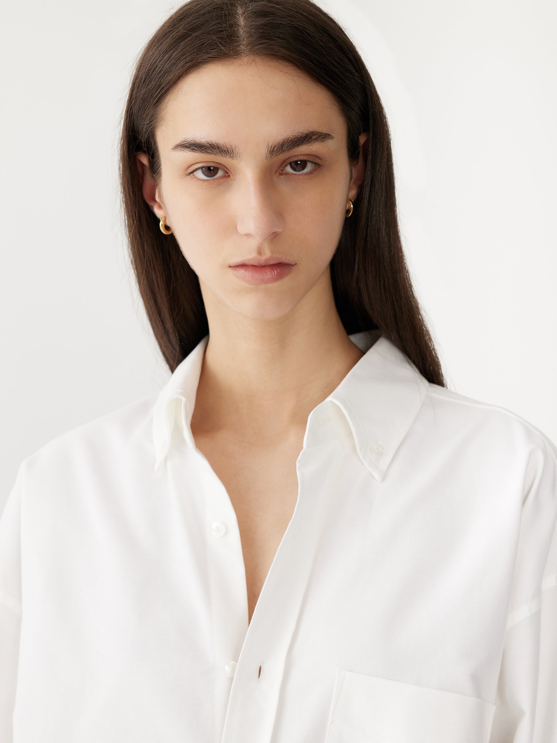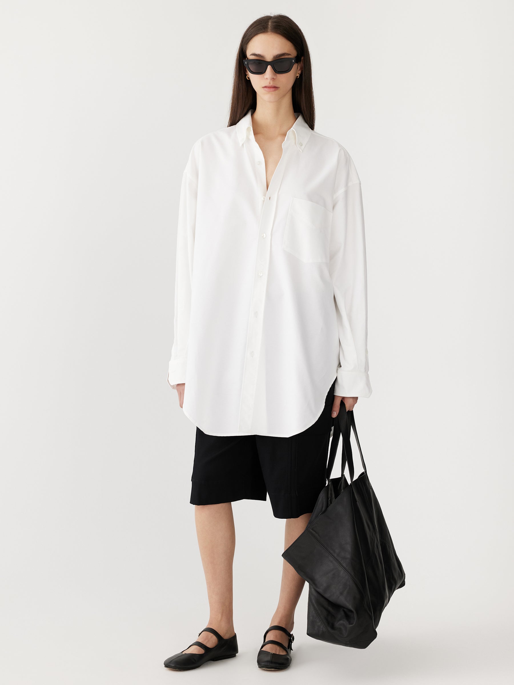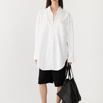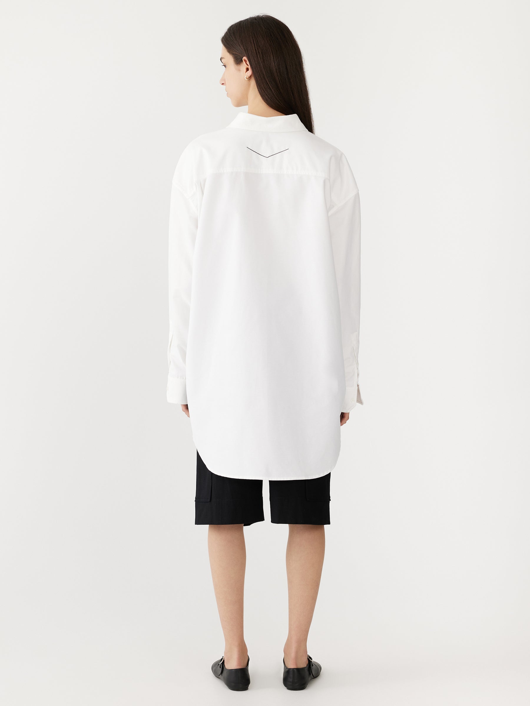 Crafted from 100% organic cotton, the oversized traditional shirt is designed for a voluminous fit. The style is detailed with classic shirting notions including a front buttoned closure, button-down collar and sleeve cuffs. Complete with a deep scoop hem.