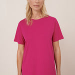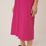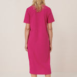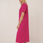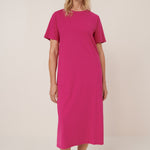 The Light Tee Dress features a standard fit and effortless midi length, detailed with signature twisted side seam. Made from lightweight organic cotton jersey in a vibrant Magenta. All Fairtrade organic cotton. All plastic-free.