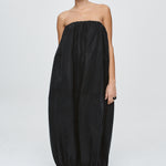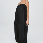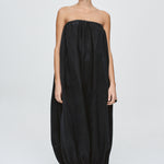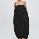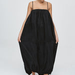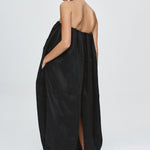 A voluminous cocoon shaped dress constructed in 3 horizontal panels, cut from 100% Lyocell. The neckline and hem are both elasticated, creating gentle gathers that enhance the a rounded form. The top features adjustable and removable fine straps for versatile styling and a centre back vent opening provides ease of movement while maintaining the cocoon volume. Functional side seam pockets are integrated into the panel seams for a clean finish.