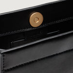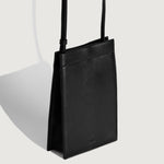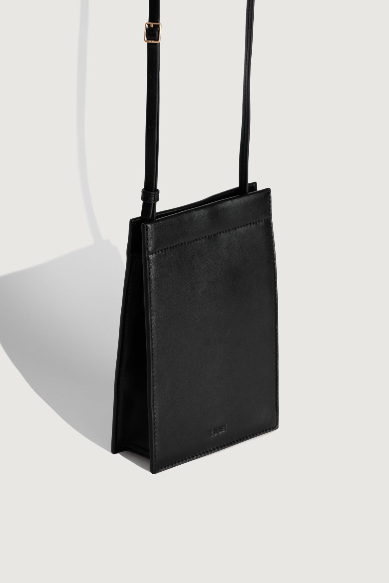 A compact cross-body bag in premium Lambskin with recycled suede lining. Designed to carry light essentials and keep its wearer hands-free, it features a snap close, card slots, and phone compartment.