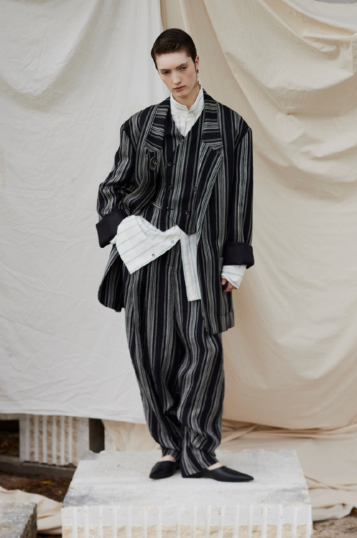 Rory William Docherty - Double Breasted Waistcoat Black/Ecru Stripe