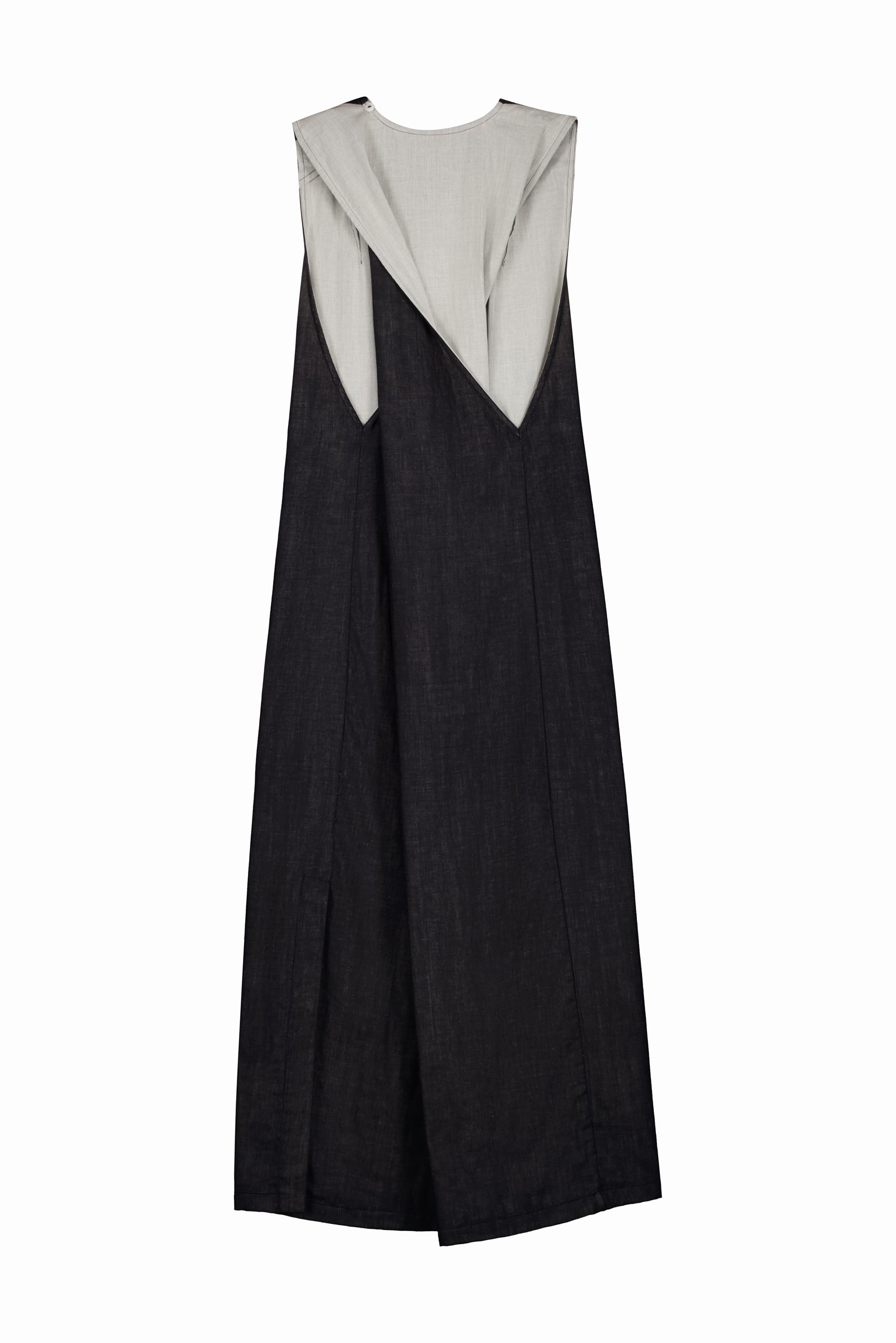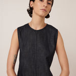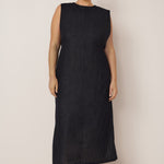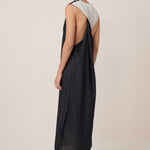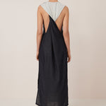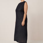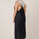 The Ensemble Dress is a versatile, beautifully draped style, crafted from a soft organic cotton double cloth. The twisted back detail creates a soft drape, while the side split adds ease and movement. The shoulder darts through the shoulder create shaping. Designed for a standard fit, it features a shell button opening at the neck. This midi-length dress can be worn alone or styled over your favourite tee.