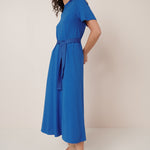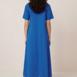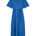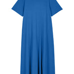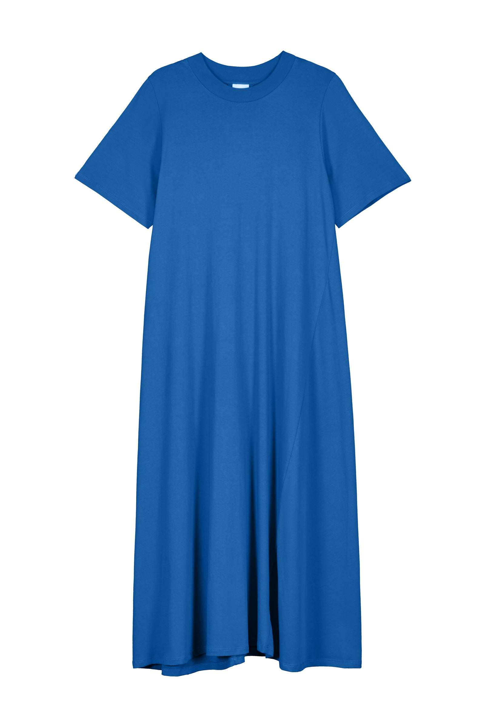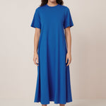 A perfect everyday staple, the T-Shirt Swing Dress is a full length, a-line dress with a wide ribbed neck. It features signature twisted side seams and a removable, woven belt for added versatility. Crafted from midweight organic cotton jersey in a vivid Azure.