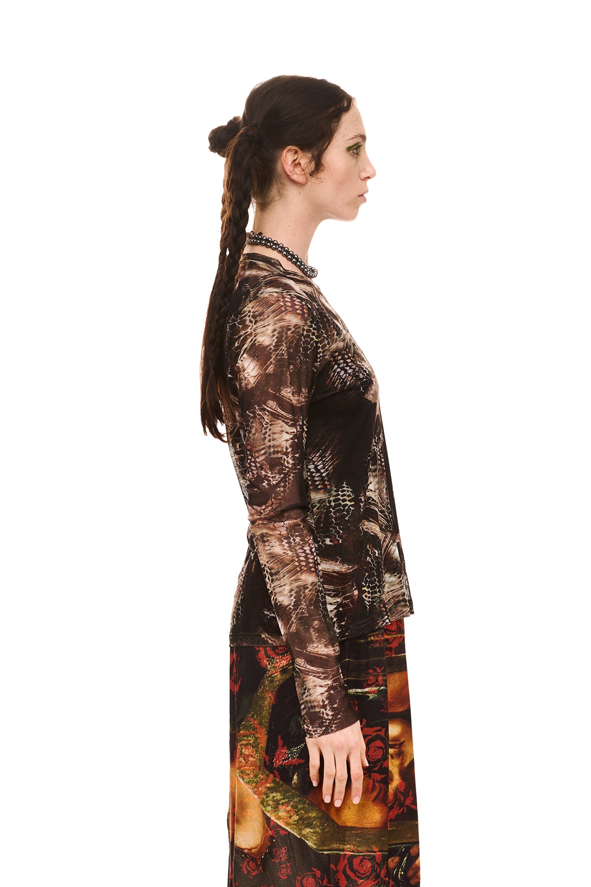 NOTE: This unique print has been produced for NOM*d and some irregularities may occur. We consider this to be a characteristic of the fabric. Due to the large scale of this print each garment may appear different from the one pictured.
