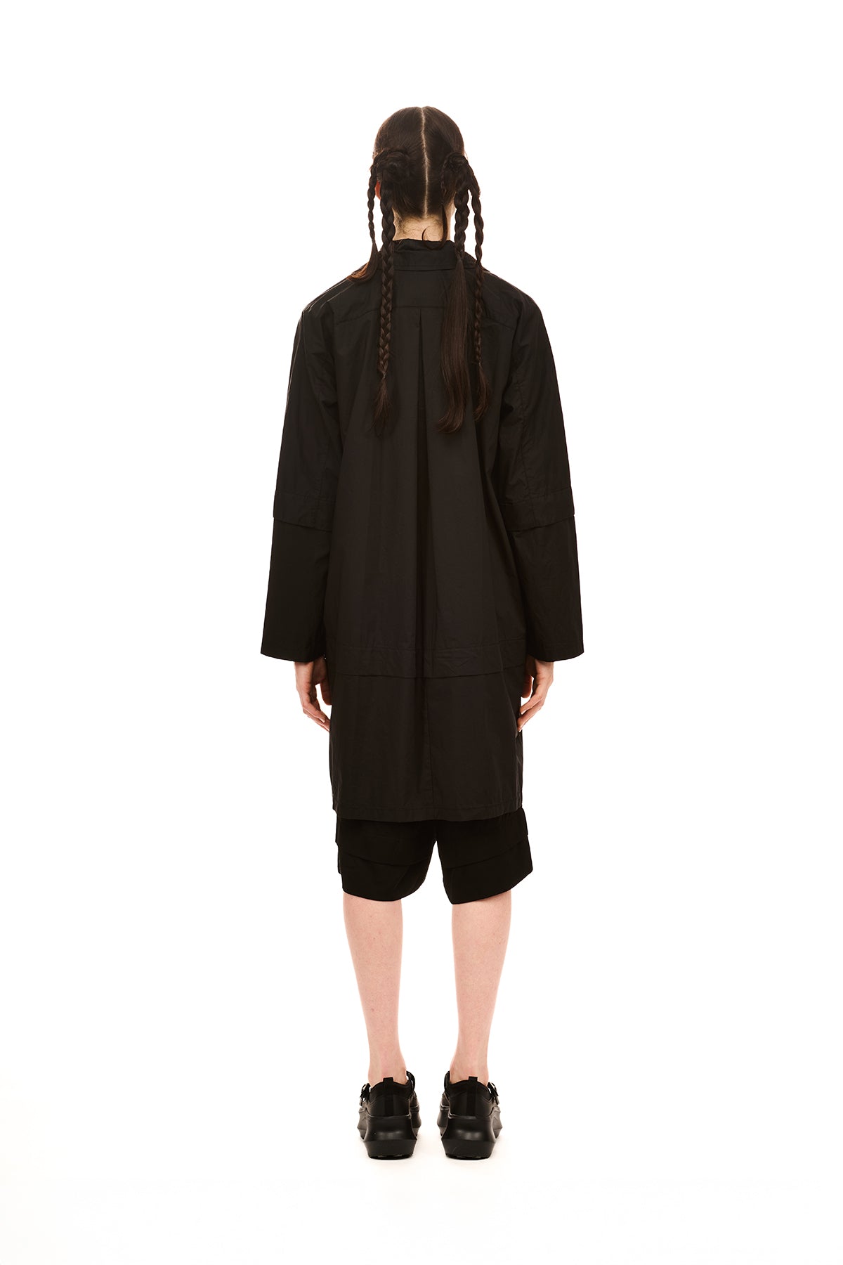 - Mid-length lightweight coat- Saddle shoulder- Panel detailing on lower body and sleeves- Front patch pockets