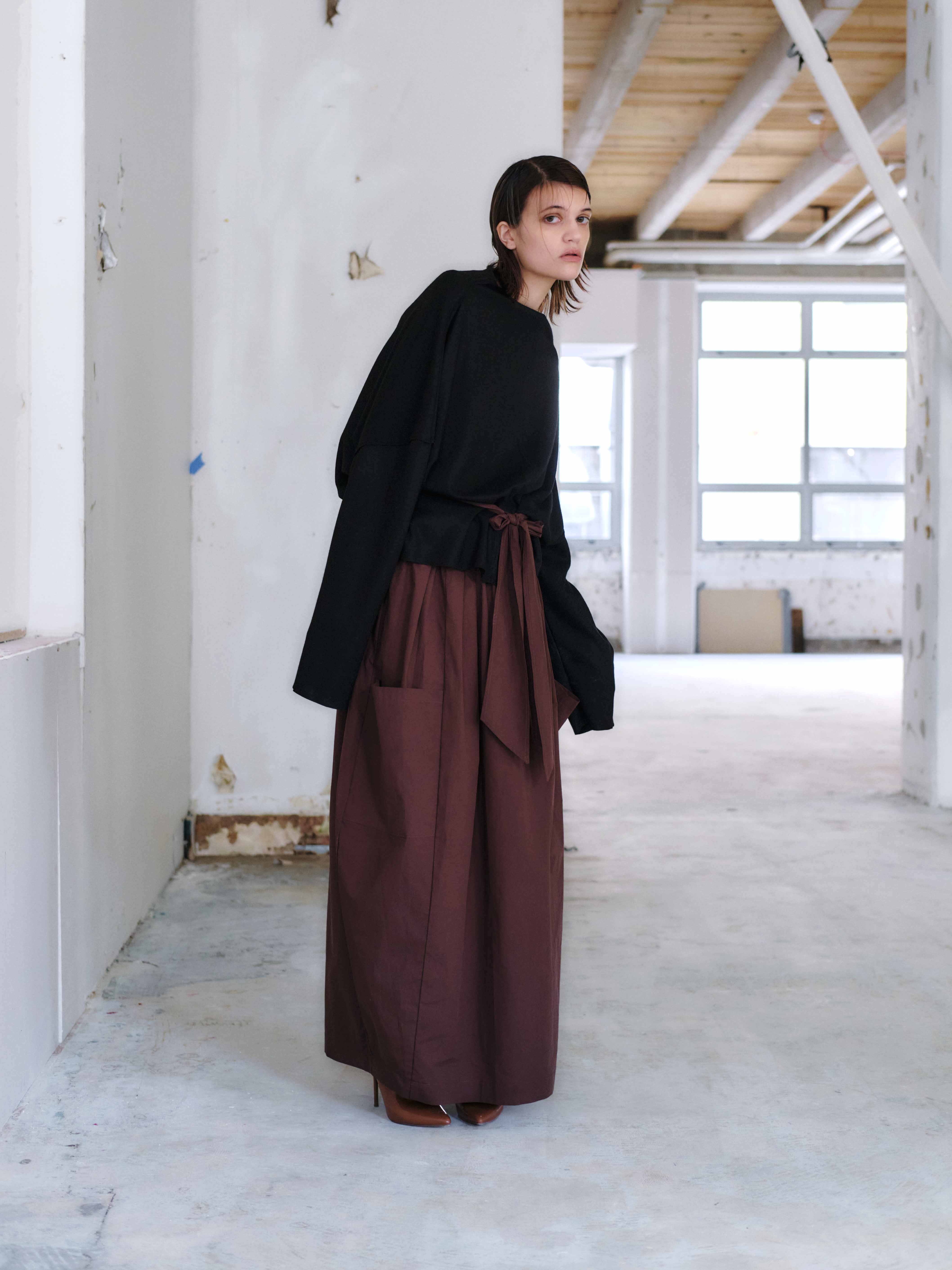 Hiyori is a balloon shaped style has a large pocket on the side. You can wear it as a skirt or as a tube top.