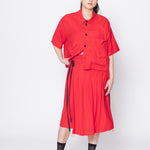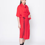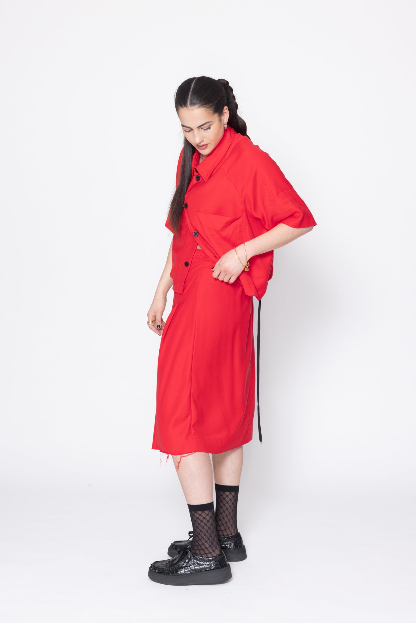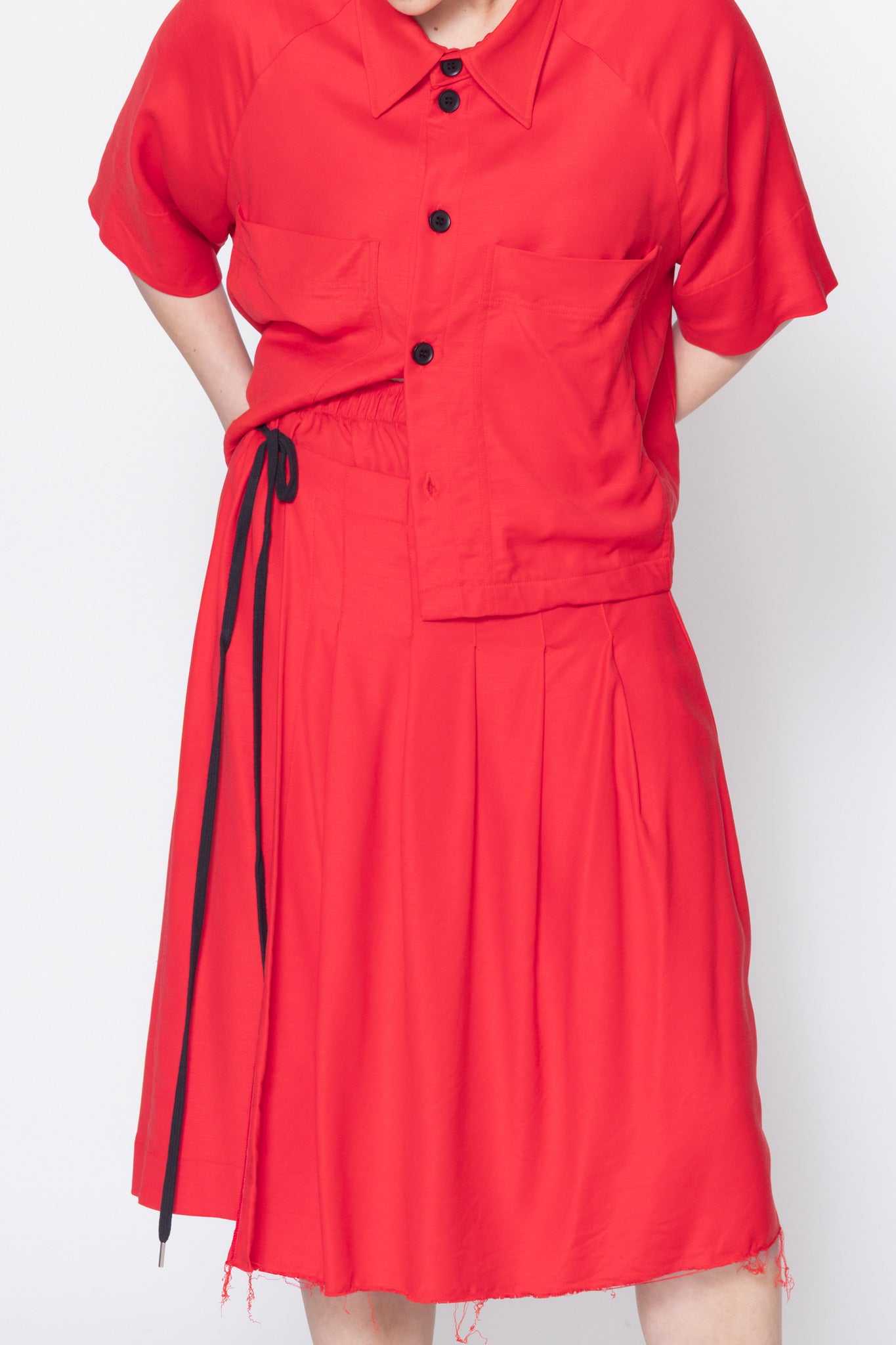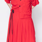 Kilt style skirt in super soft viscose suiting, designed for a relaxed fit. Easy pull on skirt with elasticated waistband and pleated wrap front which ties to the side, this can we adjusted to suit. This is a great pre-styled skirt, worn with the Admiration Shirt.