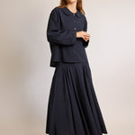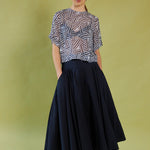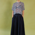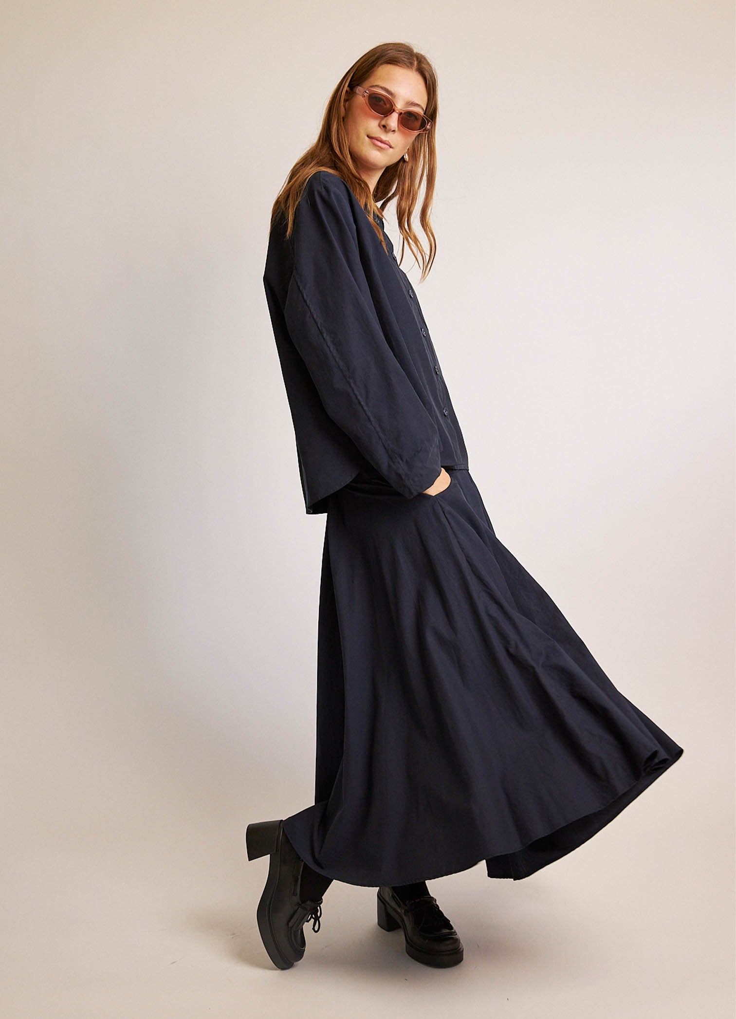 A long length skirt featuring a 3 panel basque waist detail with pockets and an invisible zip at the centre back, this is one of Daylight Moon's best selling skirt styles.
