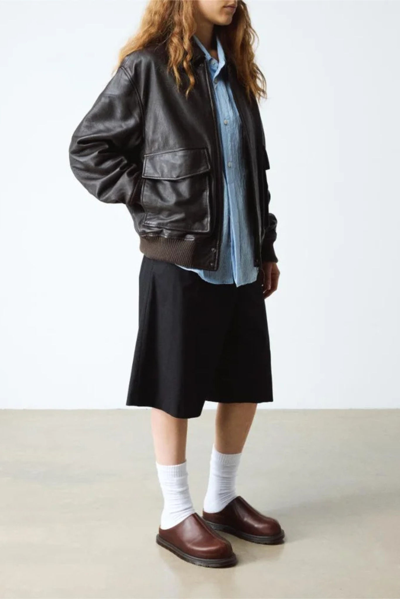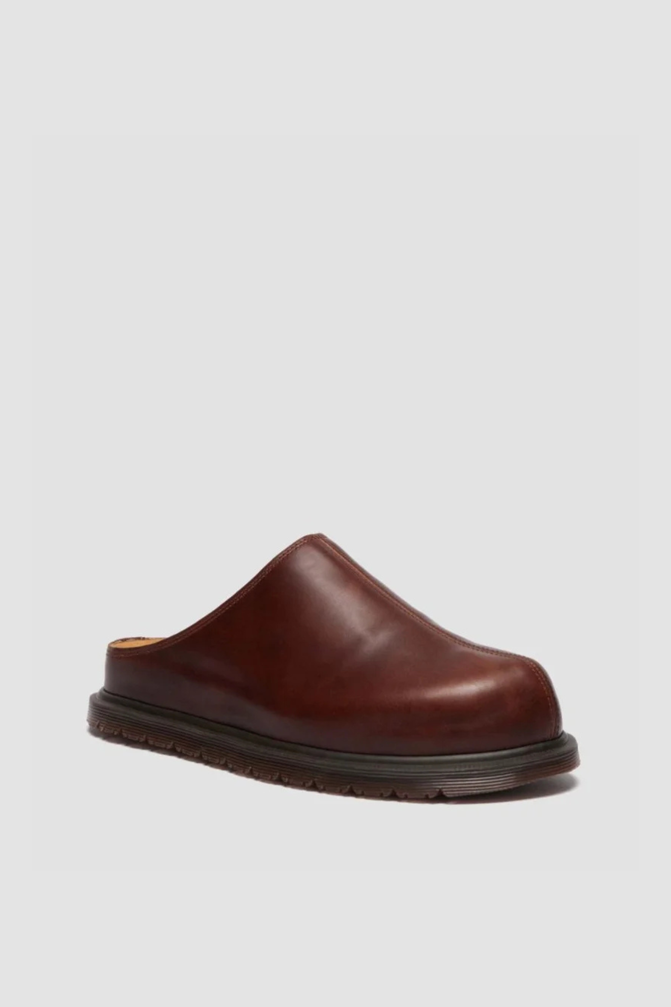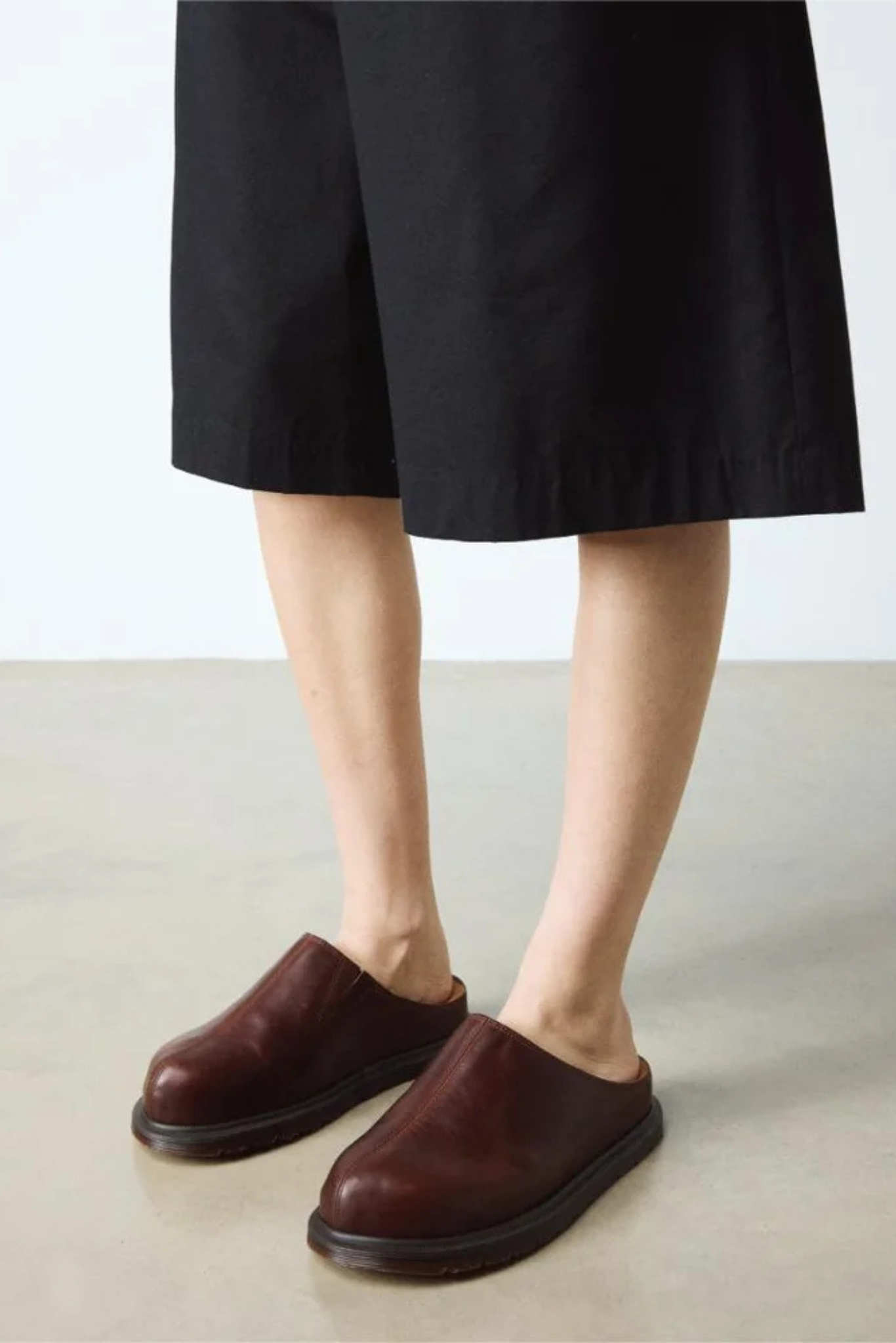 Simple styling fuelled by expert craftsmanship. The easy-on San mule underscores minimal detailing with durable construction that’s built to go the long haul. A monochrome silhouette crafted from waxy Orleans leather, it features tonal stitching down the centre of the upper and is built on a 90s-inspired San sole in retro trans.