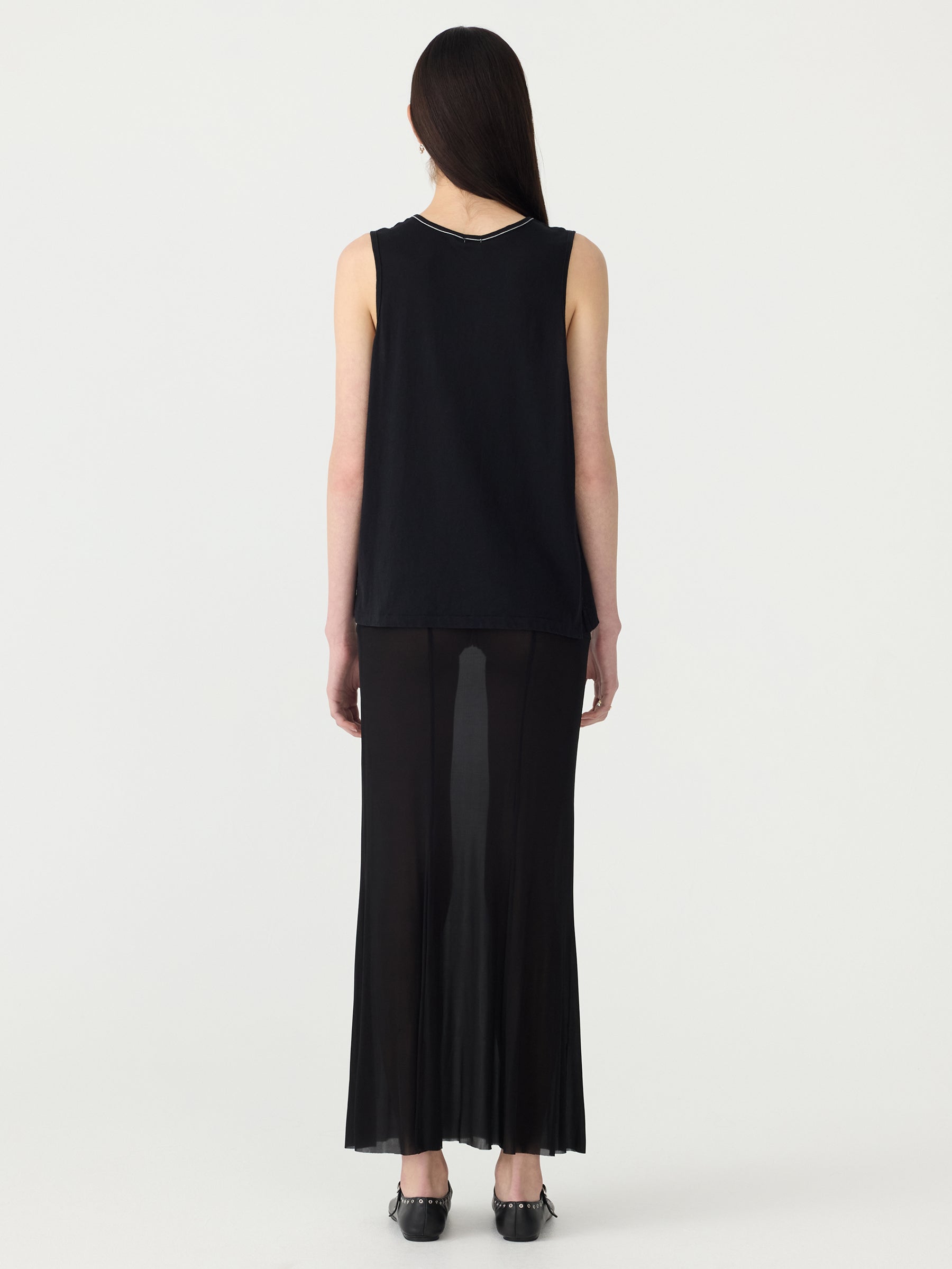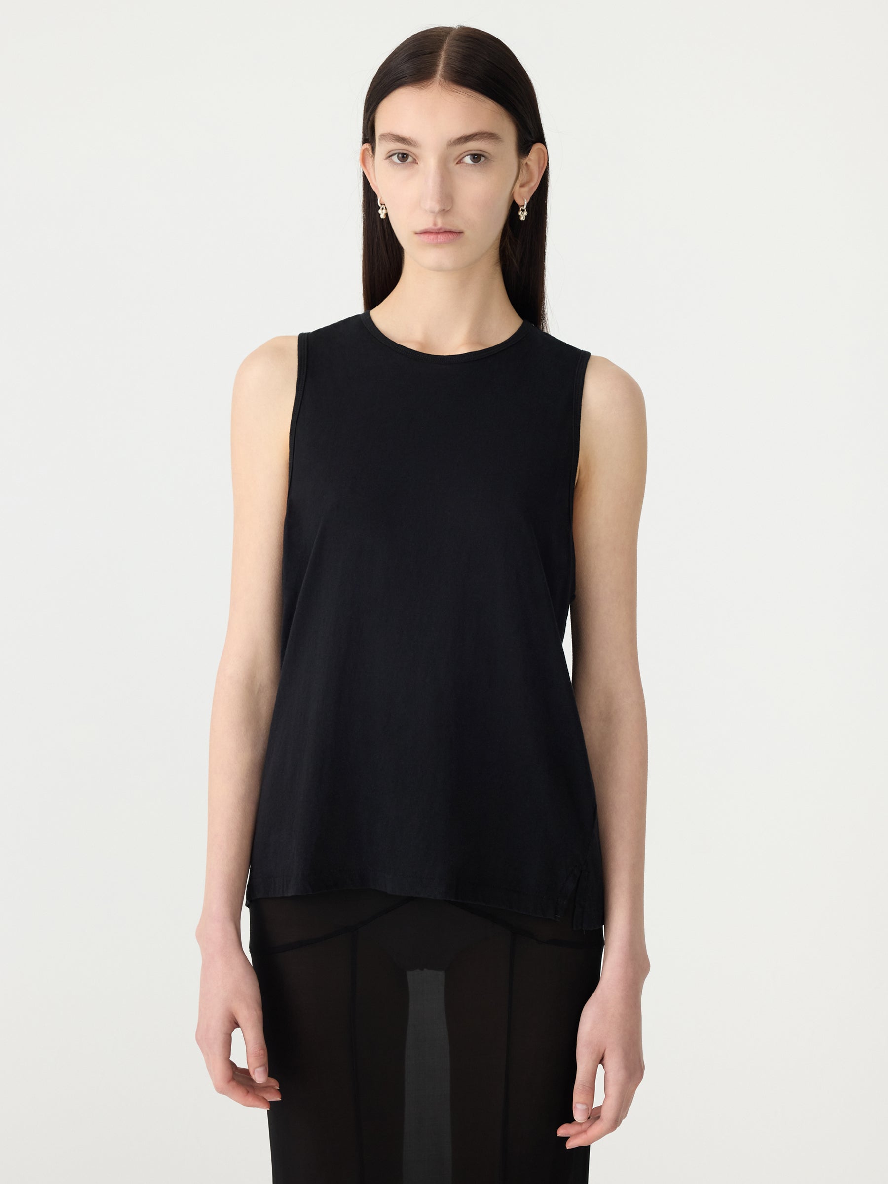 Crafted from organic cotton single jersey knitted in Australia, the Fine Bind Athletic Tank is designed with a classic straight silhouette. Featuring fine binds at the armholes and neckline, side hem splits for ease and finished with contrast chainstitch detail at the back.