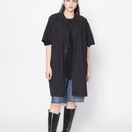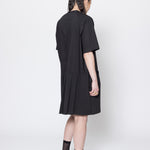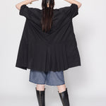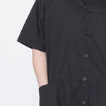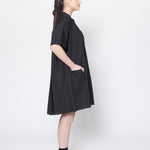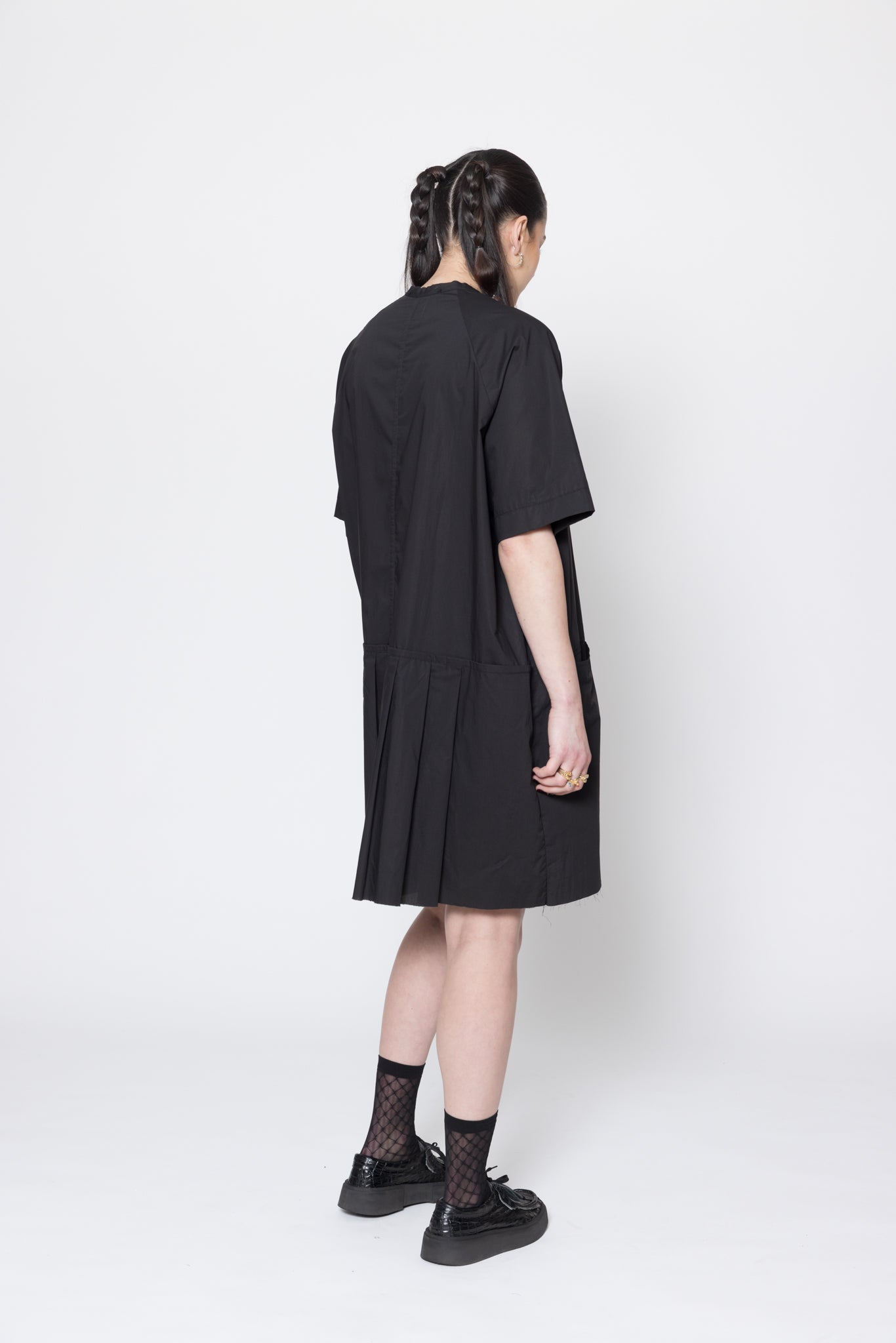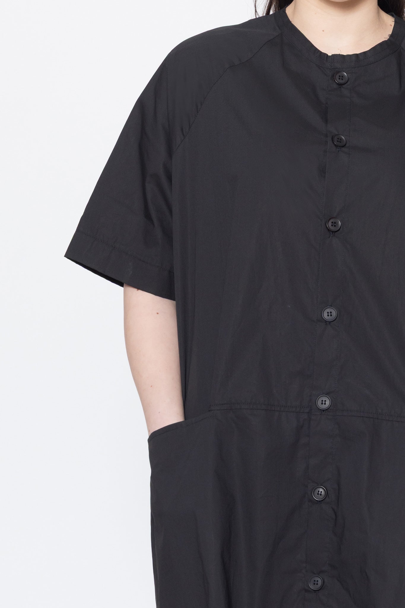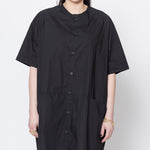 Short sleeve shirtdress in a crisp cotton shirting, designed for an oversized fit. Featuring raglan sleeves and button up placket, front inseam pockets and wide pleating at back. This is a versatile dress or as an open shirt style jacket, worn with the Polar Shorts and Entitled Tee and also on its own.