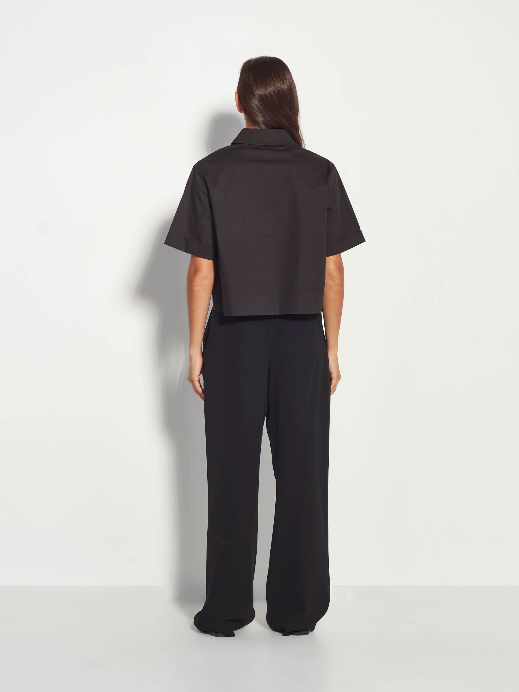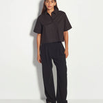 The Everly Shirt is a cropped shirt style that is an easy summer option. Featuring a short sleeve, structured collar, and an exposed button placket, this style can easily be worn open over a tank or tee, or buttoned up for a boxy cropped look.