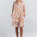 The beloved Oversized Walker Shirt is now offered in a luxurious silk-viscose dobby blend featuring the signature KW Perfect Day floral. The relaxed fit and luminous texture of the fabric provide both comfort and style. Featuring a clean and oversized silhouette, complemented by gold-tone buttons, this shirt is a versatile wardrobe staple, gorgeous for both casual and polished styling.