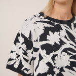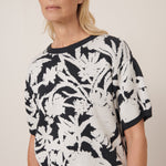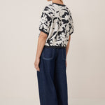 The Etched Top is a lightweight knit top with a relaxed fit, showcasing this seasons Etched Denim pattern reimagined in a jacquard knit design. Slightly cropped through the body, it features contrast ribbing at the neckline, hem and cuffs for a polished finish. Crafted in a jacquard stitch in soft organic cotton. All Fairtrade organic cotton. All plastic-free.