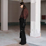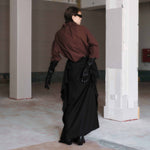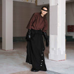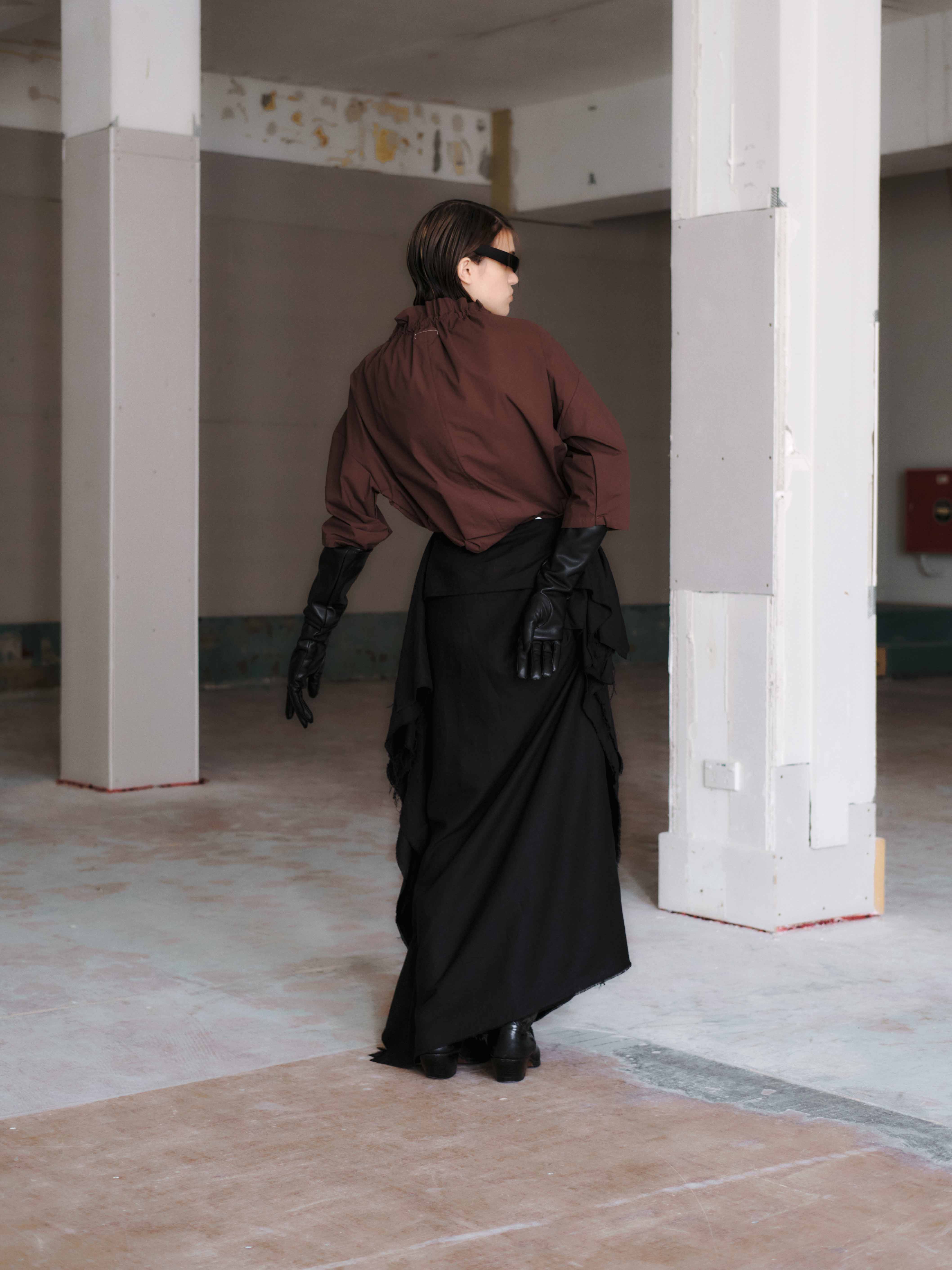 Adjustable string around neck , dropped and pointed shoulder Model is size 6 / 170cm tall