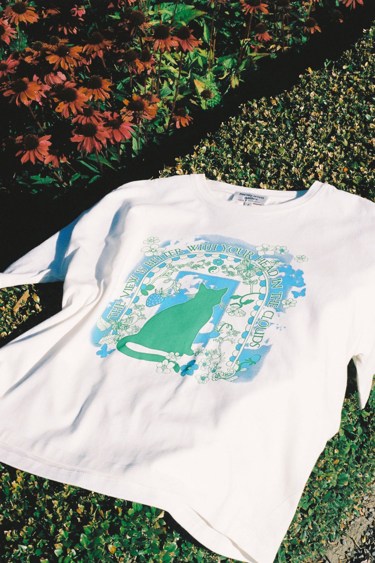 TSN's classic short-sleeved tee with cropped, boxy shape, flared back, and dropped sleeve. Made in Wellington and printed in Levin. The view is better with your head in the clouds.