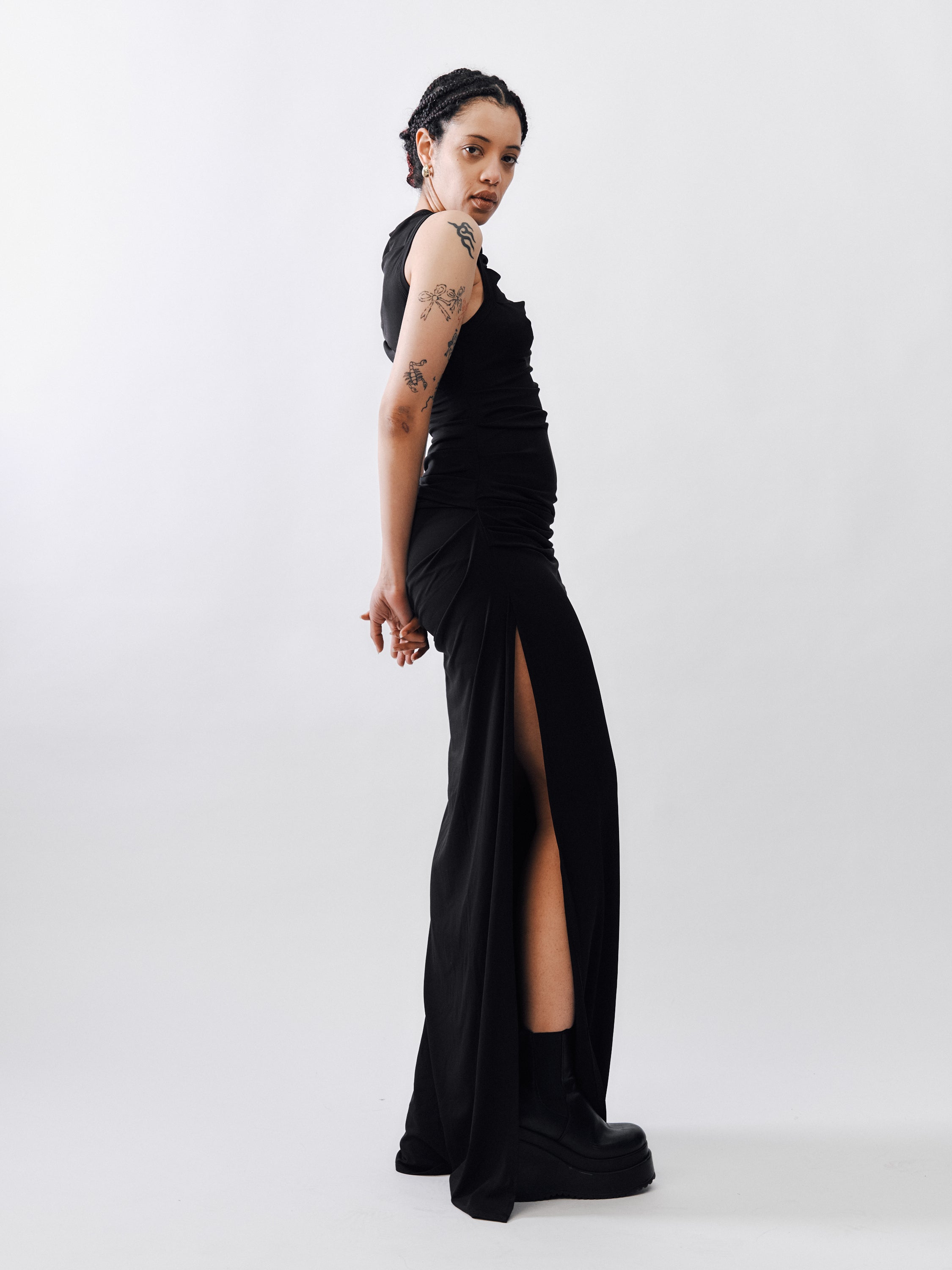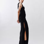 Introducing the Paloma Dress - Black, inspired by the popular Paloma Top. This stunning dress features elegant pleated drapes and a chic side seam slit, making it perfect for special occasions or events. Crafted with comfort in mind, the Paloma Dress offers a slight stretch for ease of movement throughout the day. The dress is true to size.