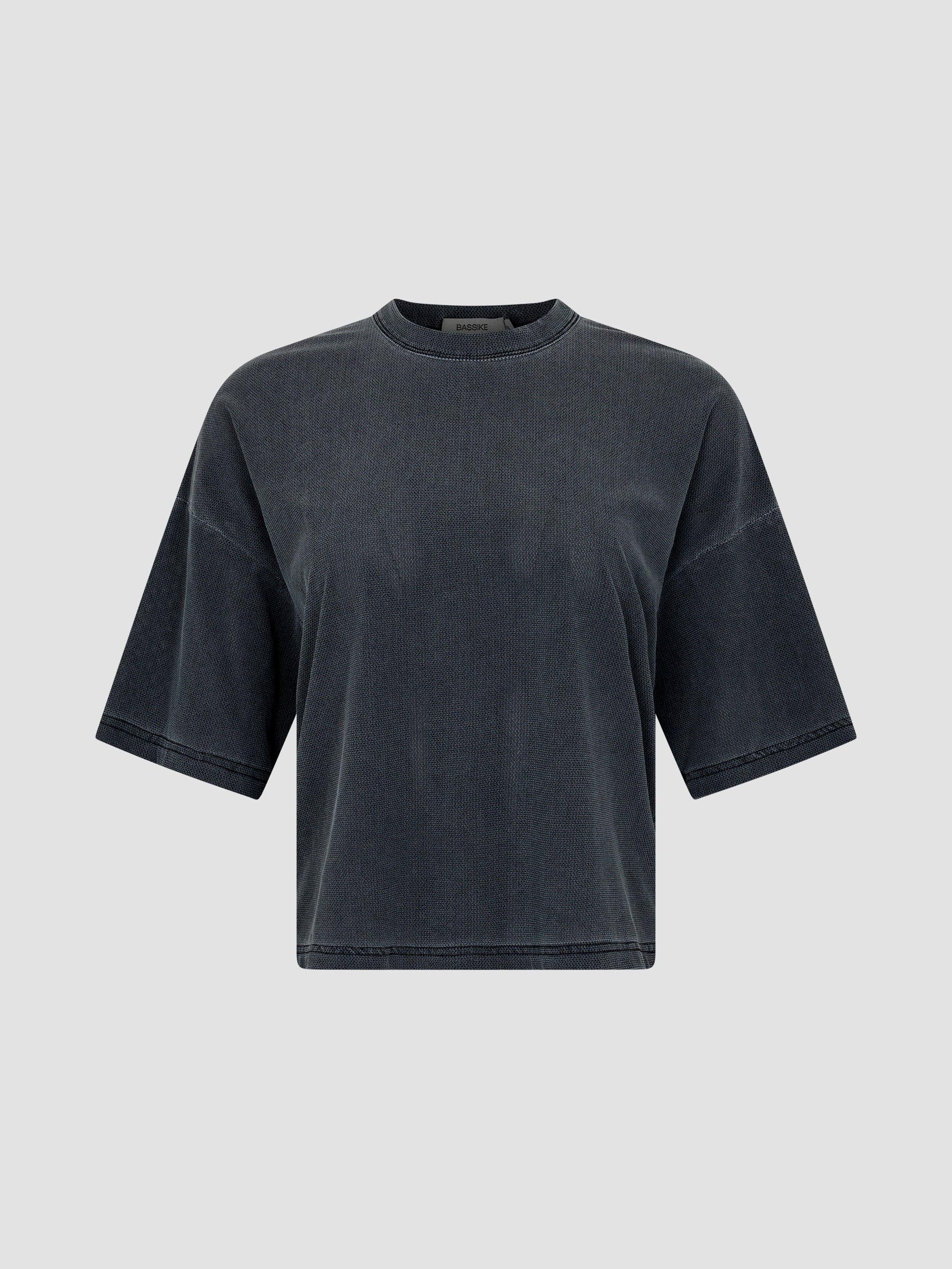 Bassike - Mesh Boxy Seam Detail T.Shirt Washed Black