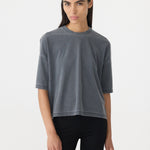 The Mesh Boxy Seam Detail T-Shirt, crafted for a relaxed silhouette. Features hem side slits and a locally washed finish using a special technique to achieve a soft, vintage-inspired look.
