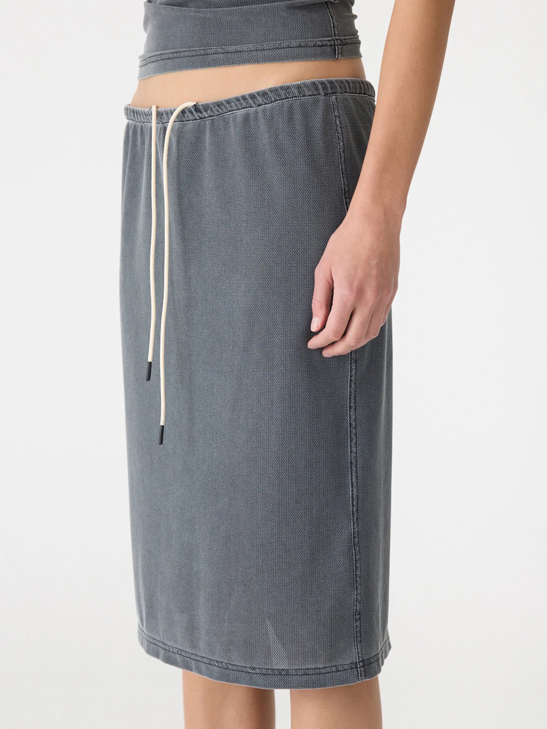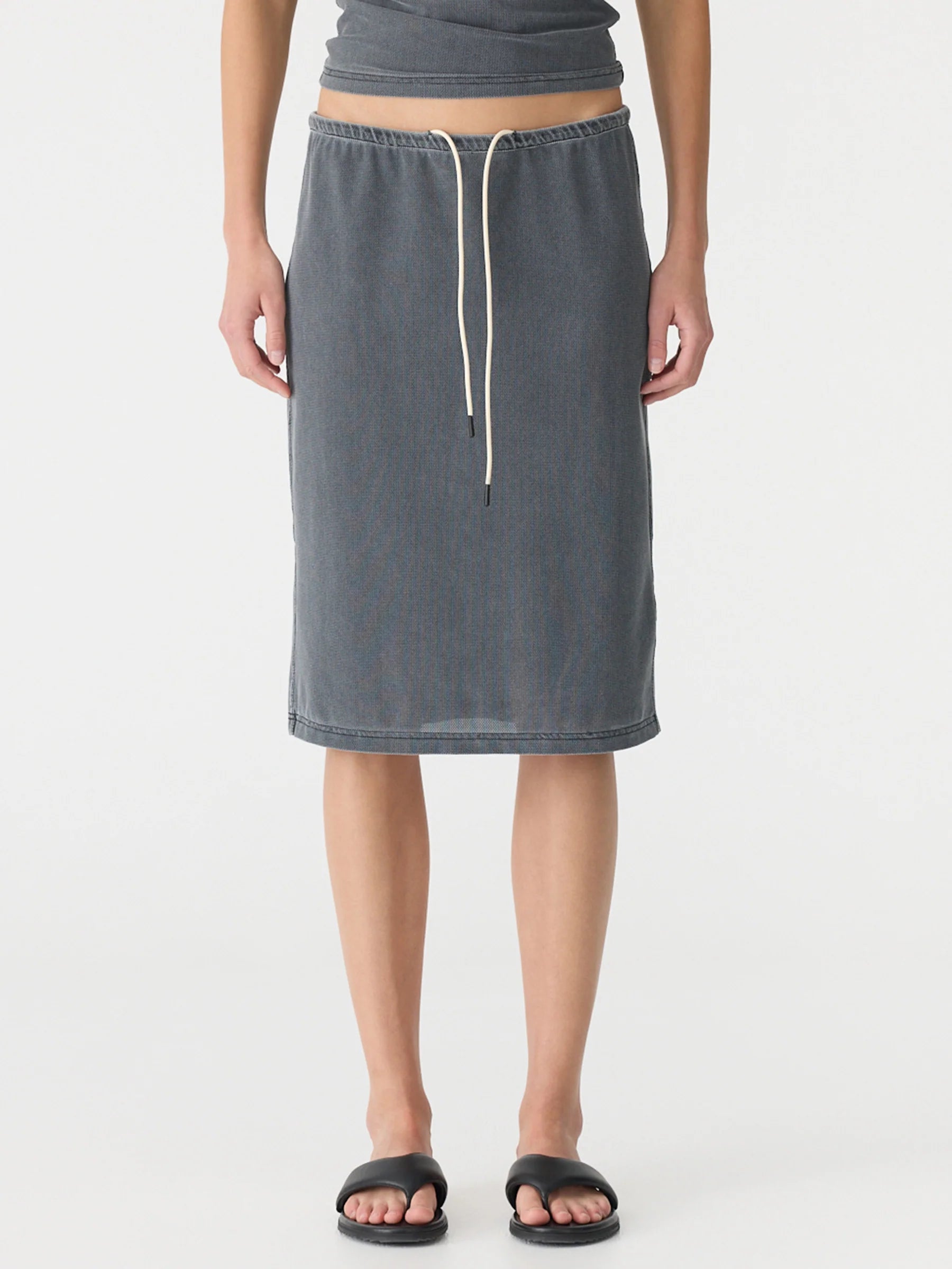 Bassike - Mesh Pull On Seam Detail Skirt Washed Black