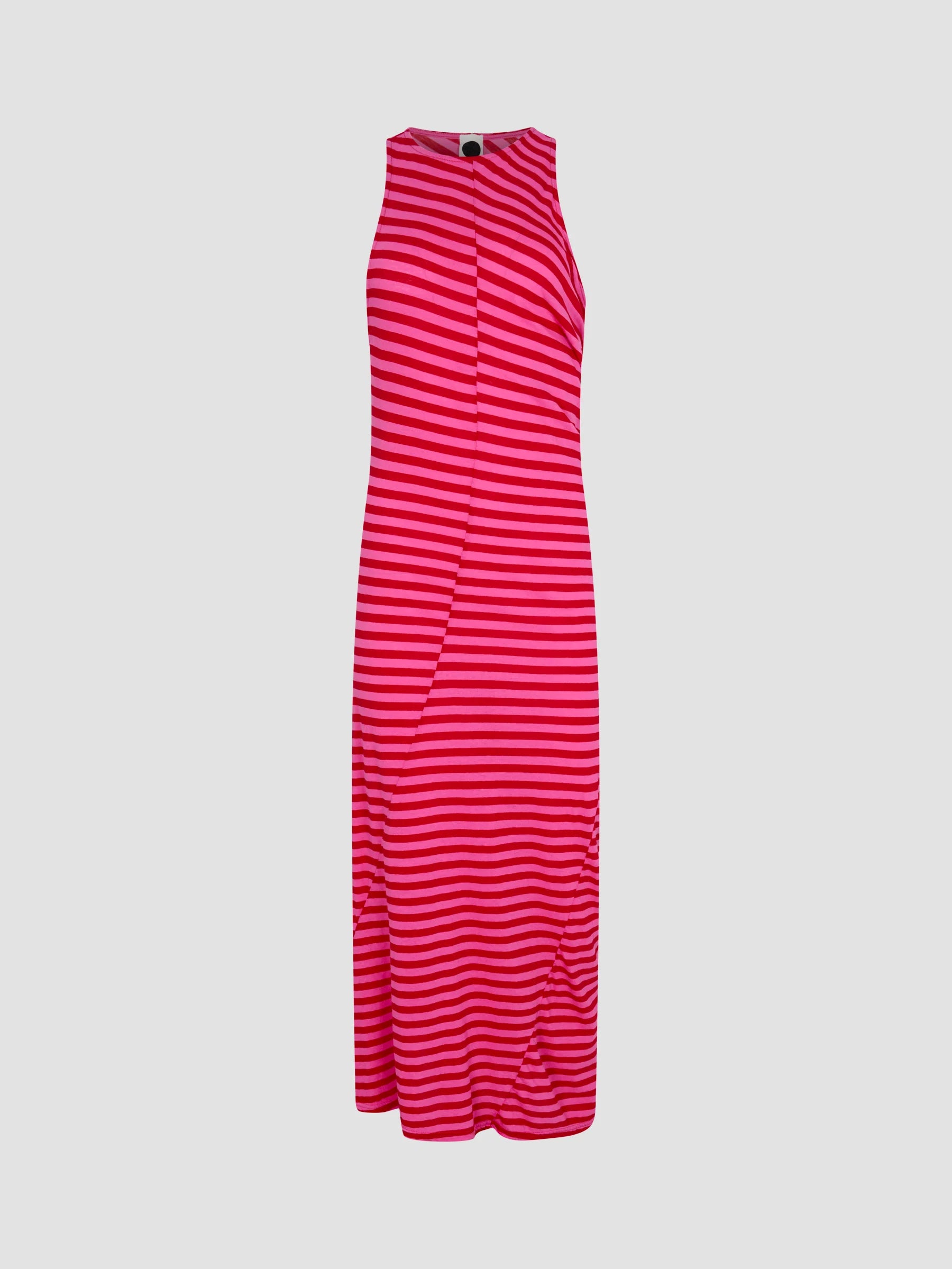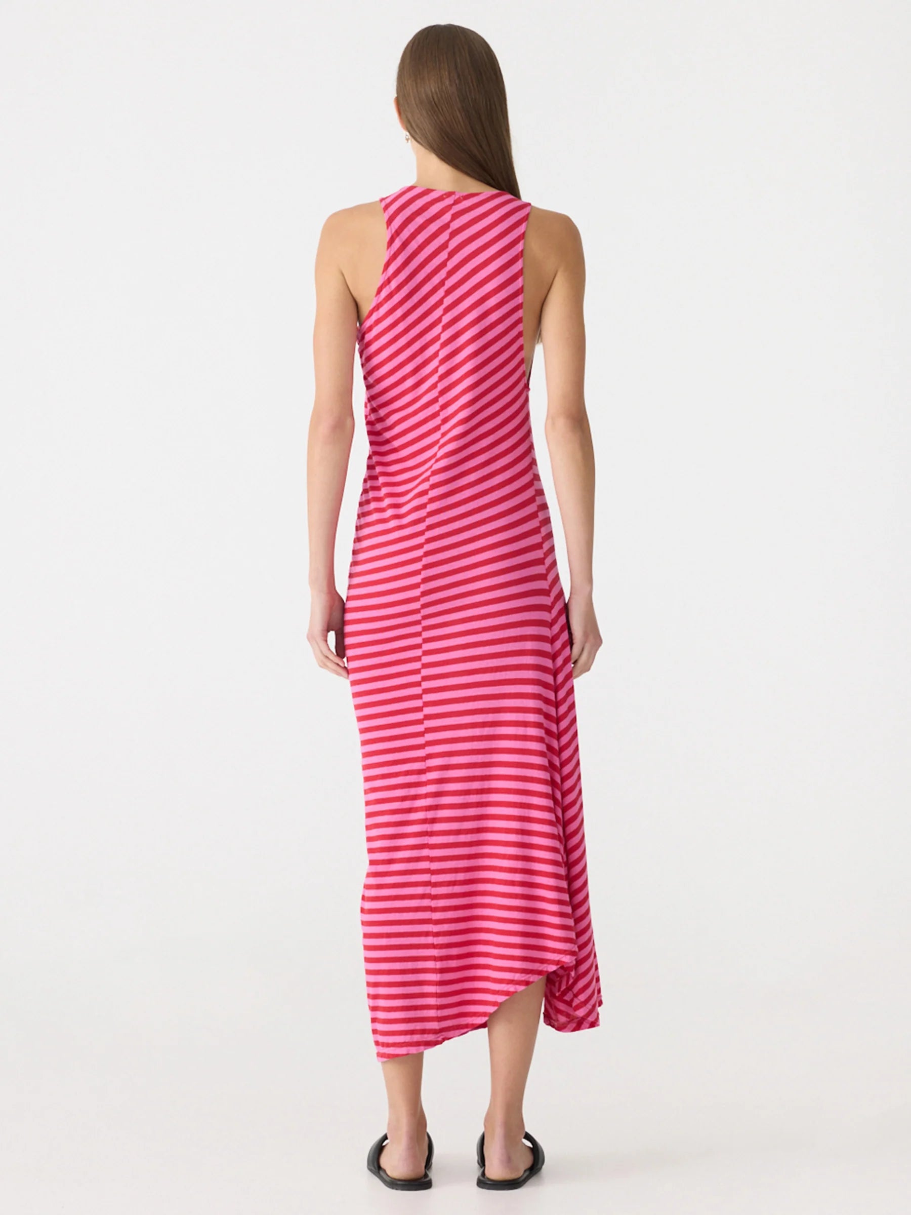 Bassike - Stripe Asymmetric Tank Dress Red/Pink