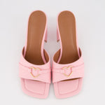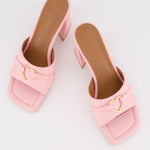 Lolita is an “ode to 90’s” mule featuring gold heart trim detailing on a mule cut vamp. A flirty and fun statement sandal for summer that can be dressed up or down, Lolita features a modern, flared block heel for sharp-looking stability. Flattering and comfortable on the foot with gentle forepart padding for comfort and support, Lolita is set to be our newest summer obsession.