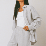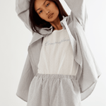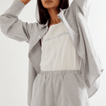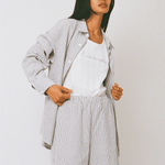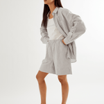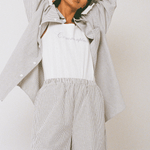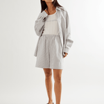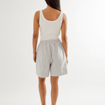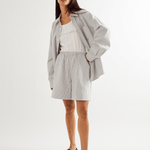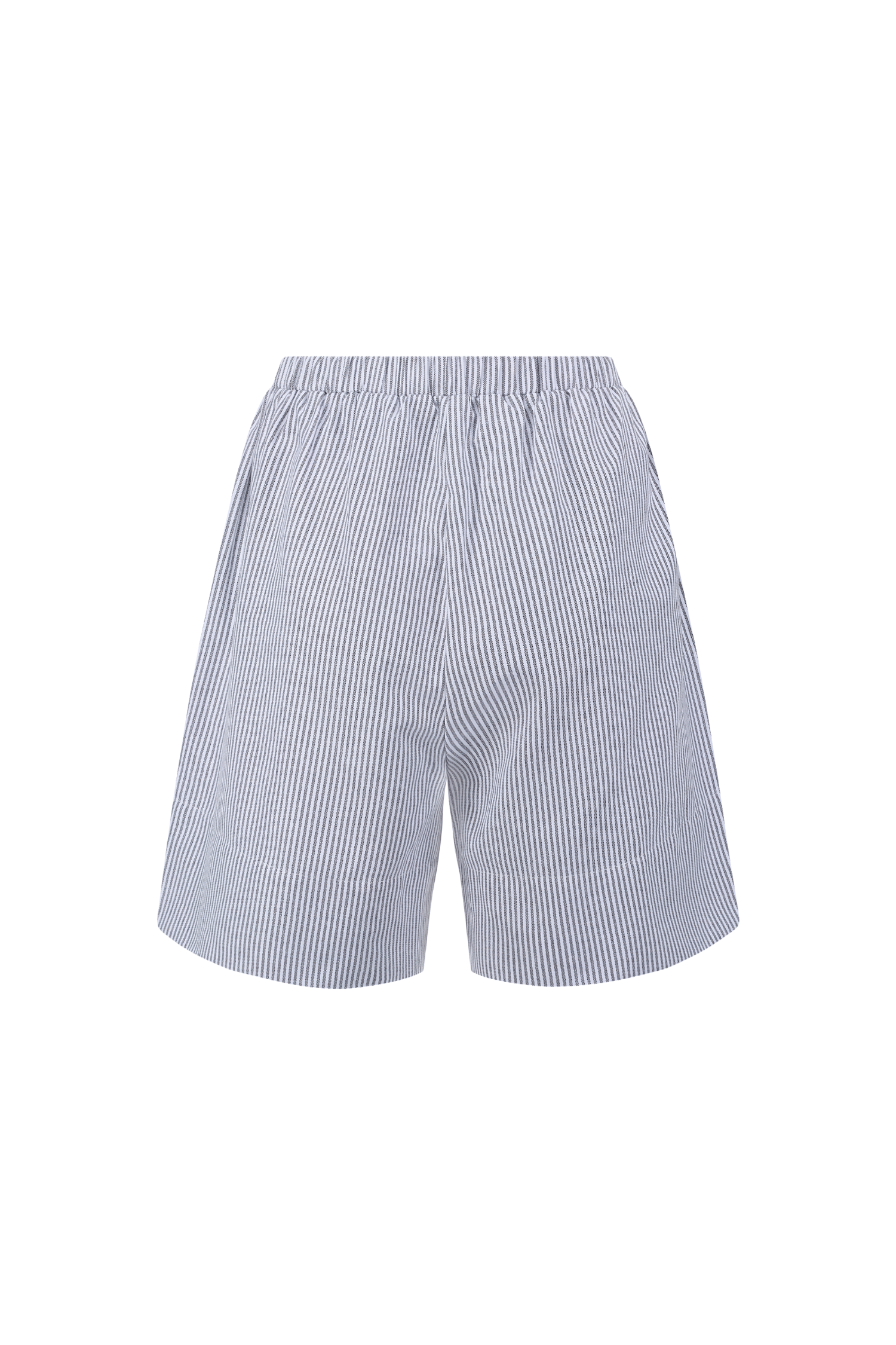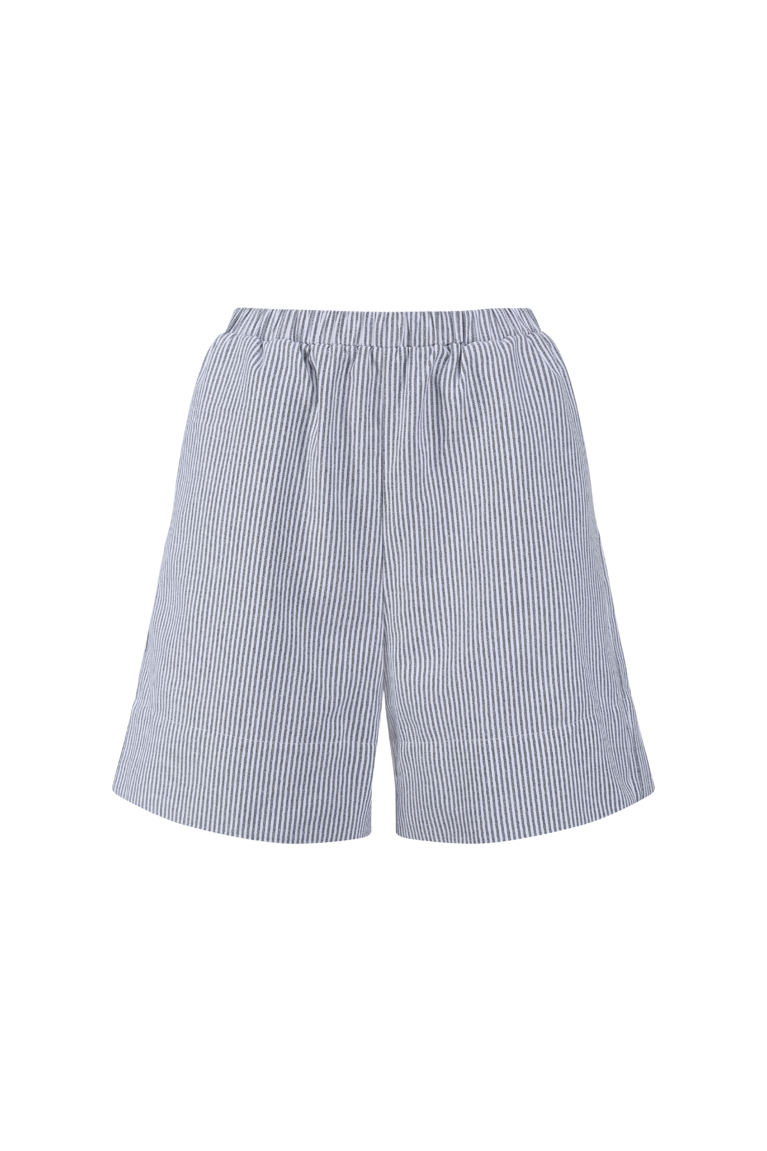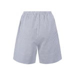 Relaxed long line striped shorts with an elasticated waist for comfort. Wear with the Beech Cottage Shirt or a Riviera Pointelle Tank. 100% Organic Cotton.