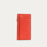 Crafted in Calf Nappa with brass hardware, Card Holder in Tamarillo features a streamlined longline shape with five card compartments and a secure zip pocket for everyday ease.
