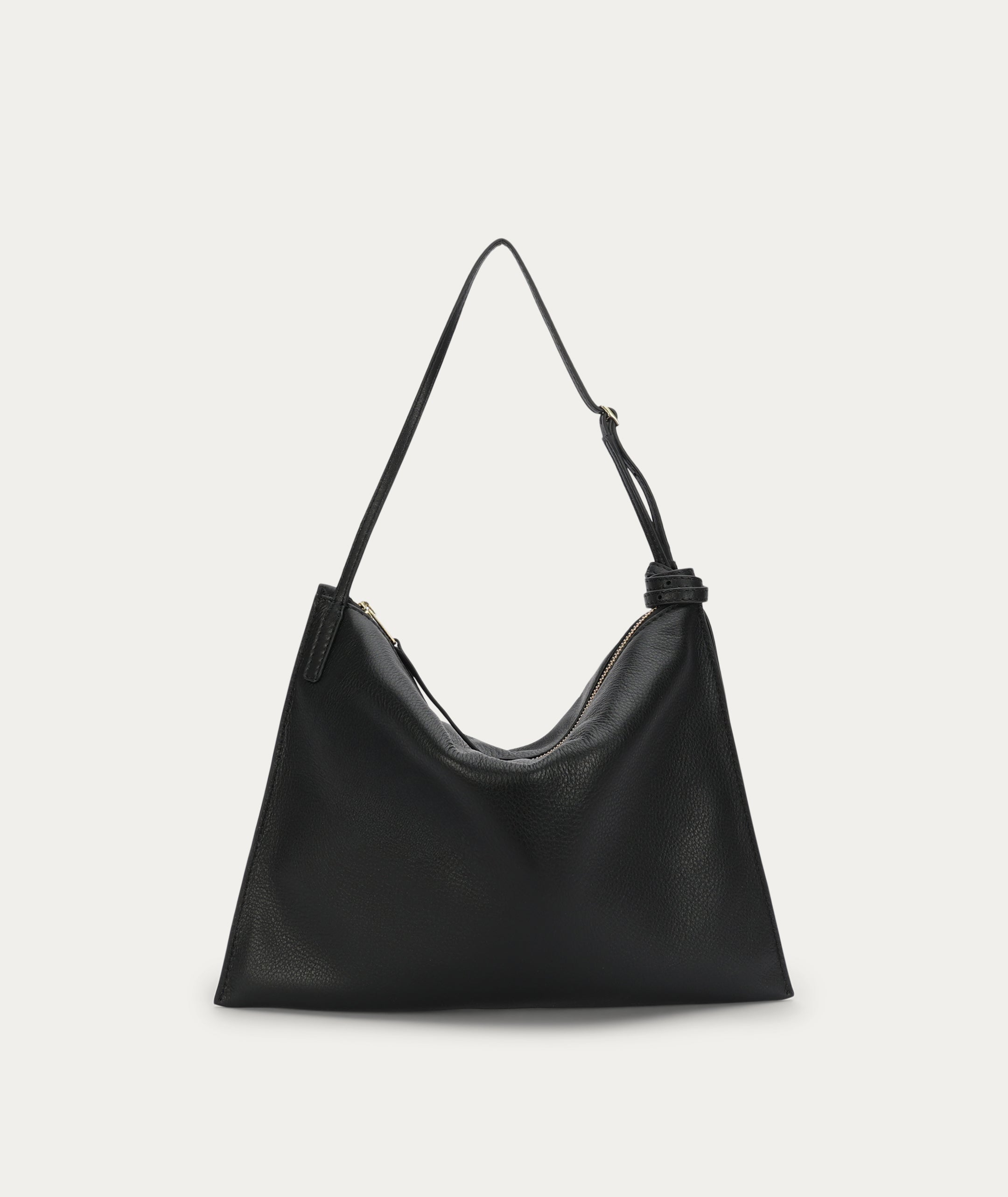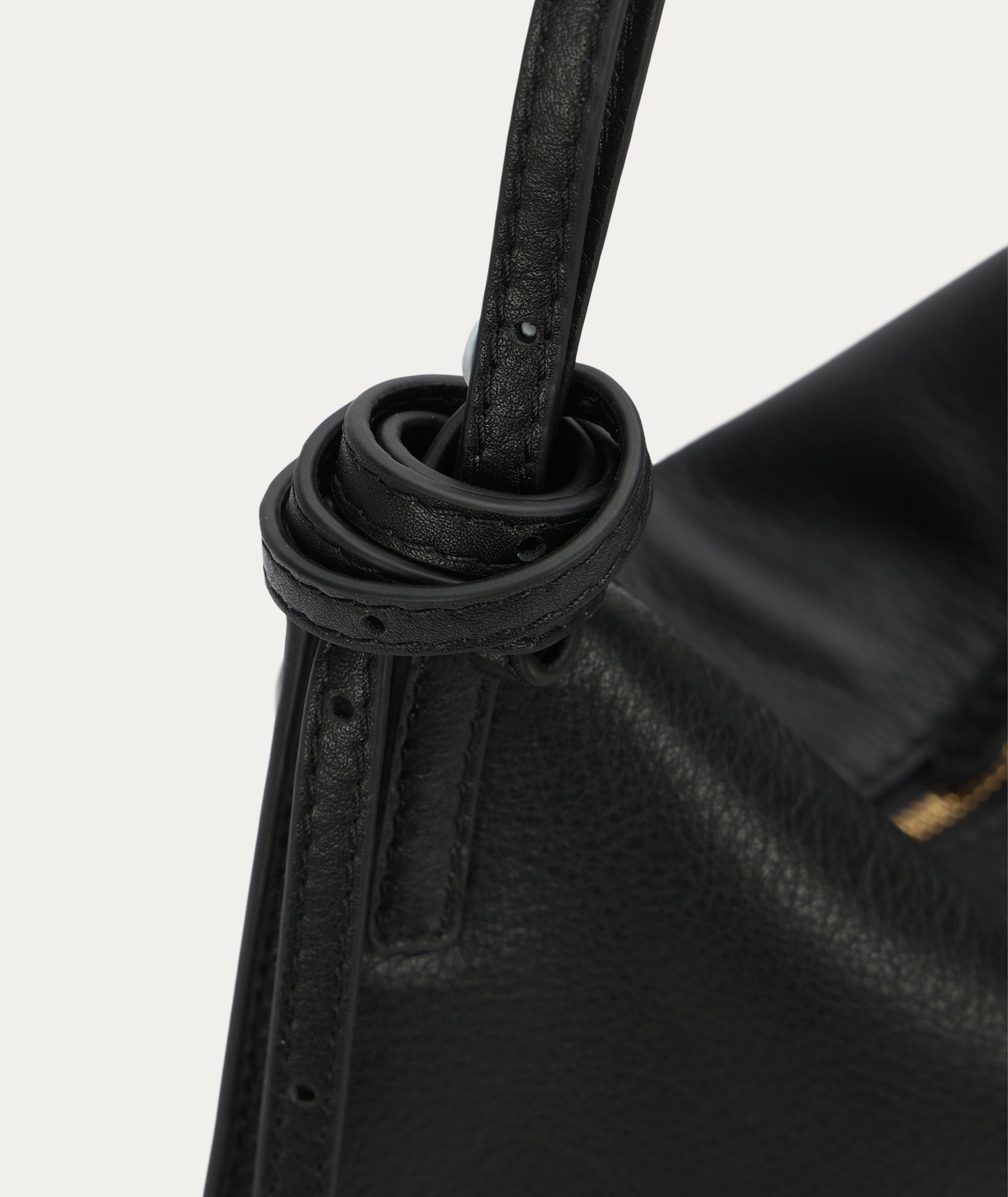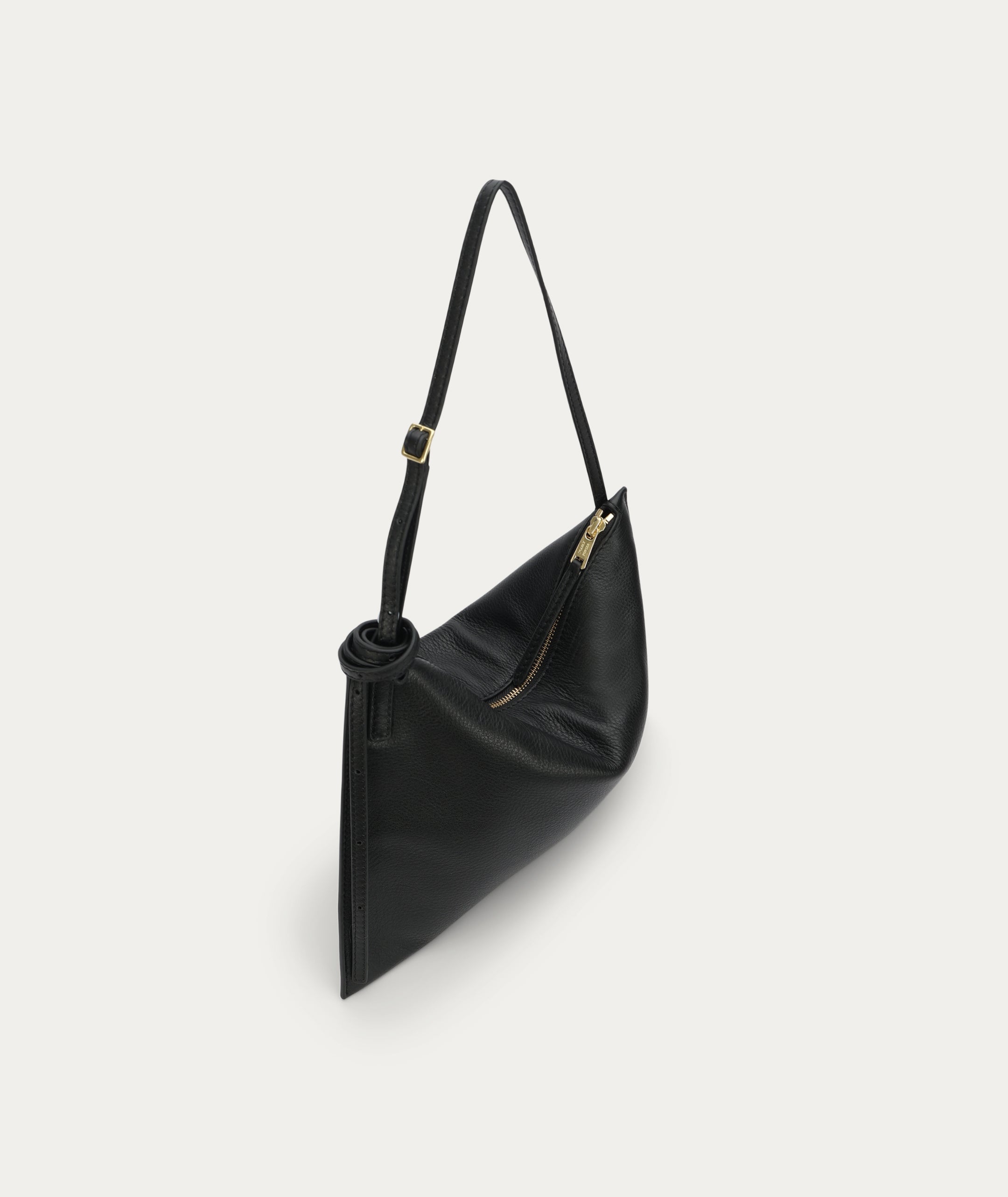 Mr Chopalopagus Mini is a slouchy silhouette in LWG-certified Black Calf Nappa. Finished with an adjustable strap, signature brass hardware, slip pockets, and a secure zip closure, designed for shoulder or crossbody wear.