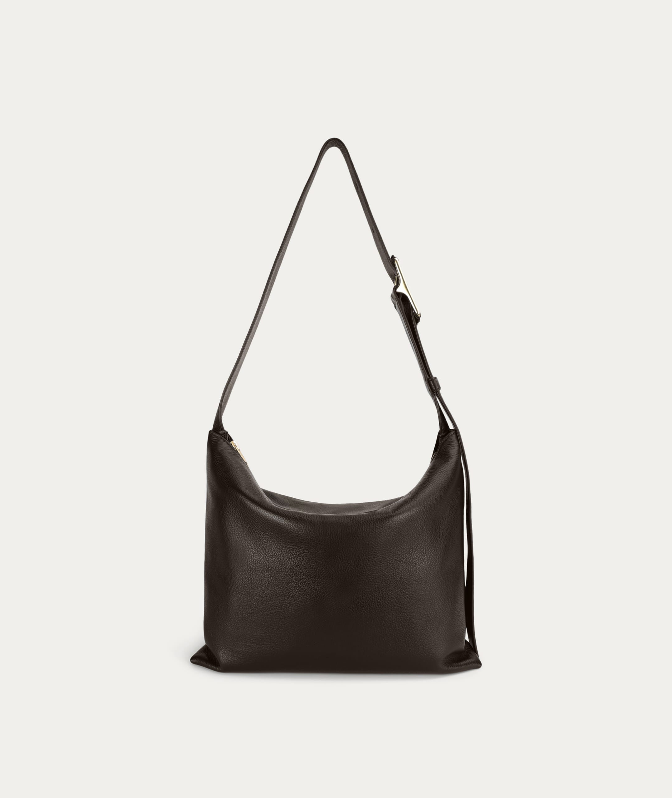 Mr Midimese in Java is crafted from signature LWG-certified Calf Nappa. This shoulder bag features a slouchy exterior, zip closure, adjustable strap, and a brass buckle. Inside, he offers two slip pockets, a zip pocket, and an internal key clip for added practicality.