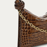 Croc Embossed Calf Leather, Leather Working Group-certified, REACH Certified Cotton Lining, Brass Hardware.