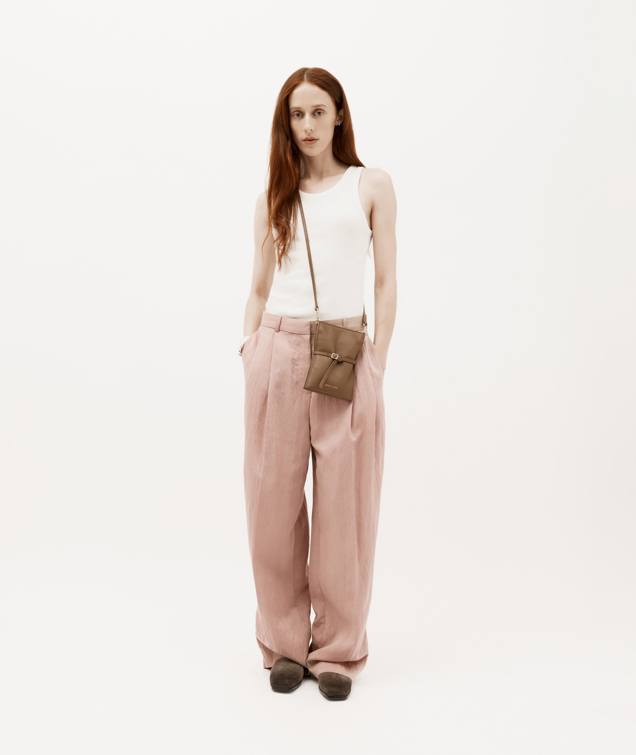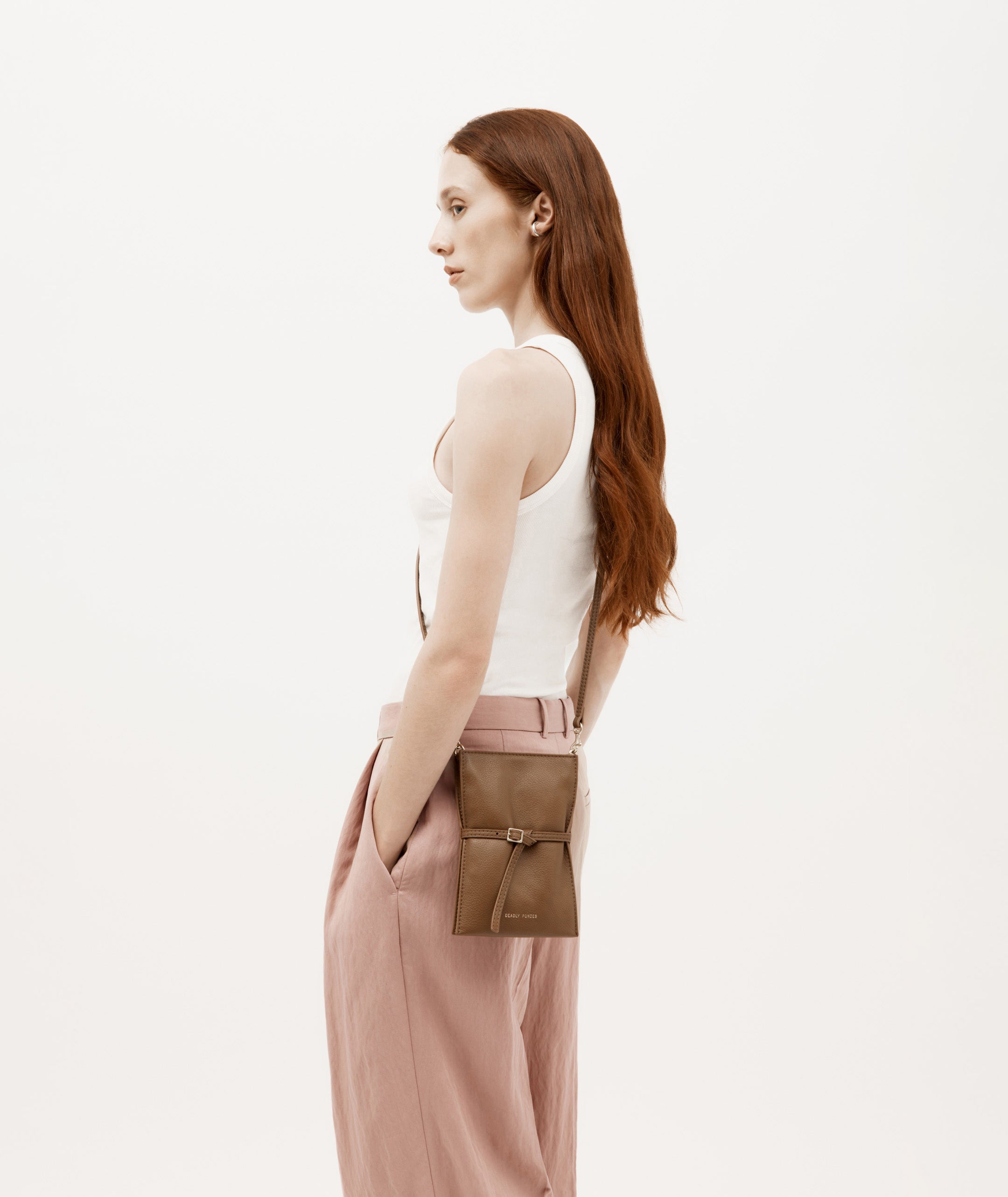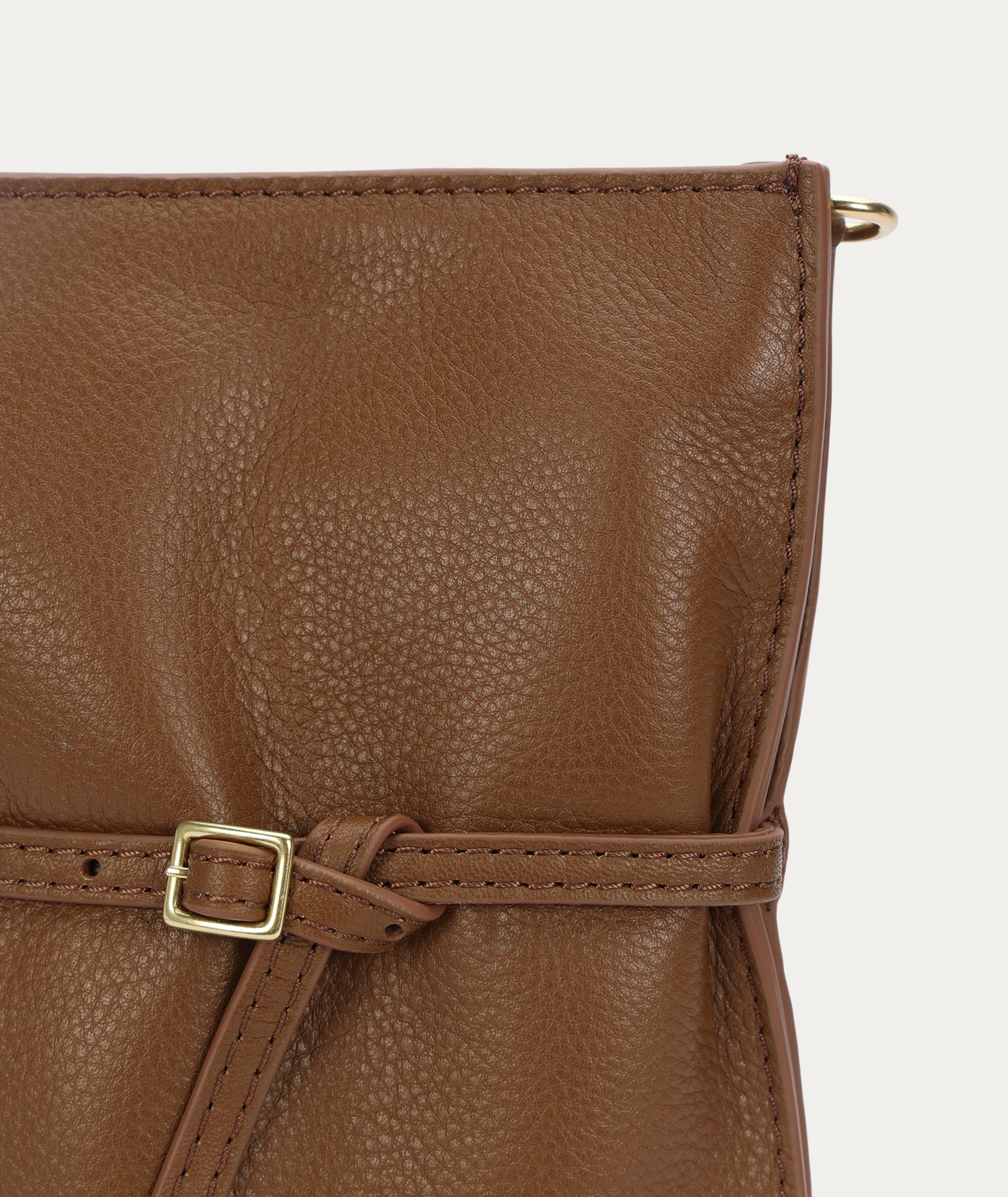 Crafted from buttery LWG-certified Calf Nappa, Mr Penny Pouchette in Toffee offers a compact silhouette with leather strap detailing and a front buckle accent. A detachable strap allows for versatile wear, while a back slip pocket keeps essentials close.