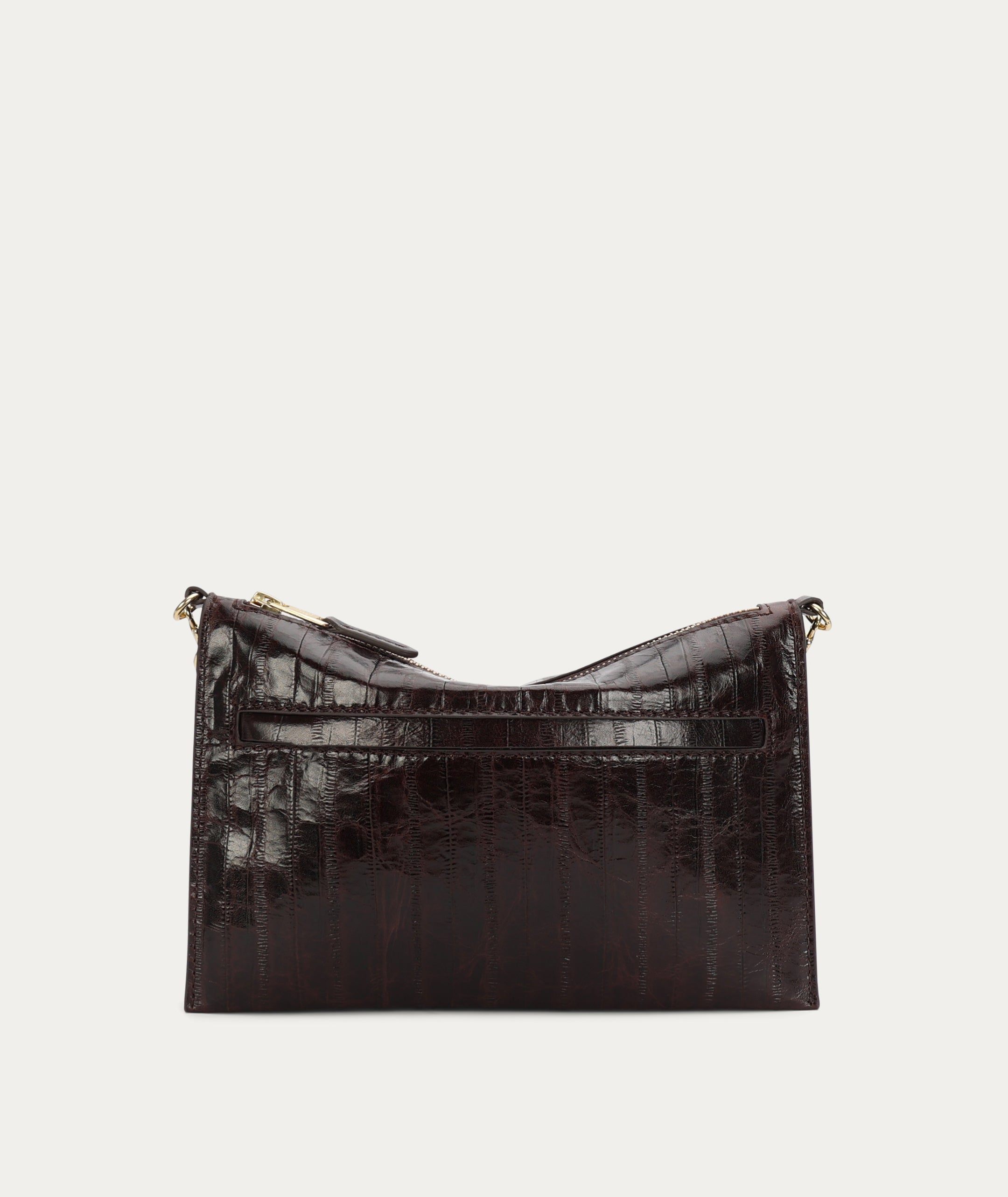 Crafted from a single piece of eel-embossed LWG-certified Calf leather, Mr Siamese in Java Eel is defined by his streamlined silhouette. With a detachable solid brass chain and adjustable strap, he transitions seamlessly from clutch to shoulder or crossbody wear.