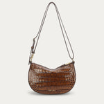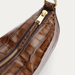 Croc Embossed Calf Leather, Leather Working Group-certified, REACH Certified Cotton Lining, Brass Hardware.