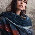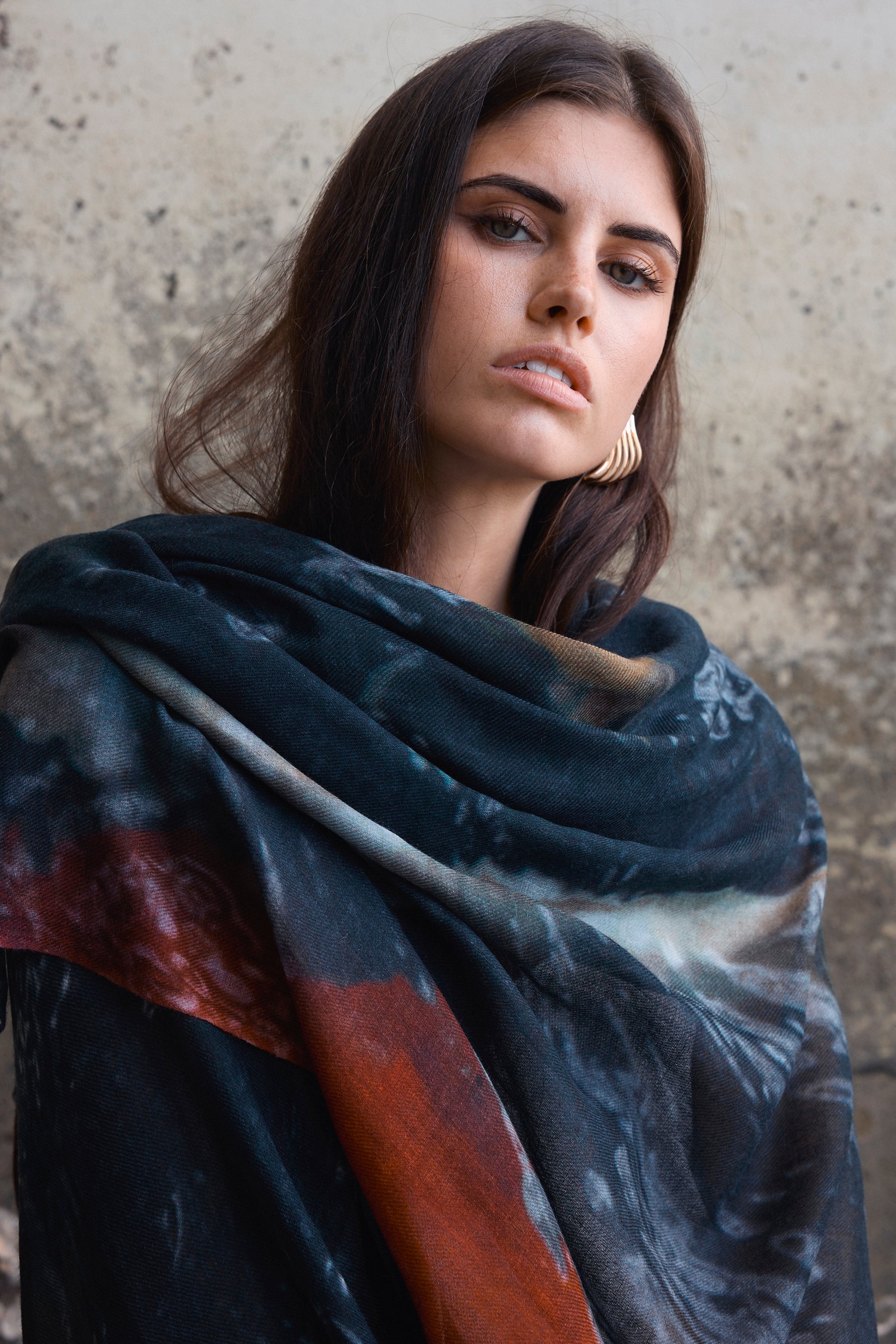 These iconic oversized wool scarves are your AW must-have accessory. Snuggly layers of lush wool/silk for all your layering needs. Lightweight yet luxuriously soft and warm, this is a wardrobe essential for any occasion. Finished with a hand frayed hem .