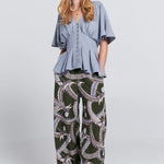 The Frontier Trousers in carousel Tencel linen blend offer comfort with a playful edge. Featuring an elasticated waist with drawstring cord ties, side slash pockets, and singular back welt pockets, these pants pair just as well with the matching Florence or Carousel Tops, as they do when dressing up your favourite staple tees and shirts.