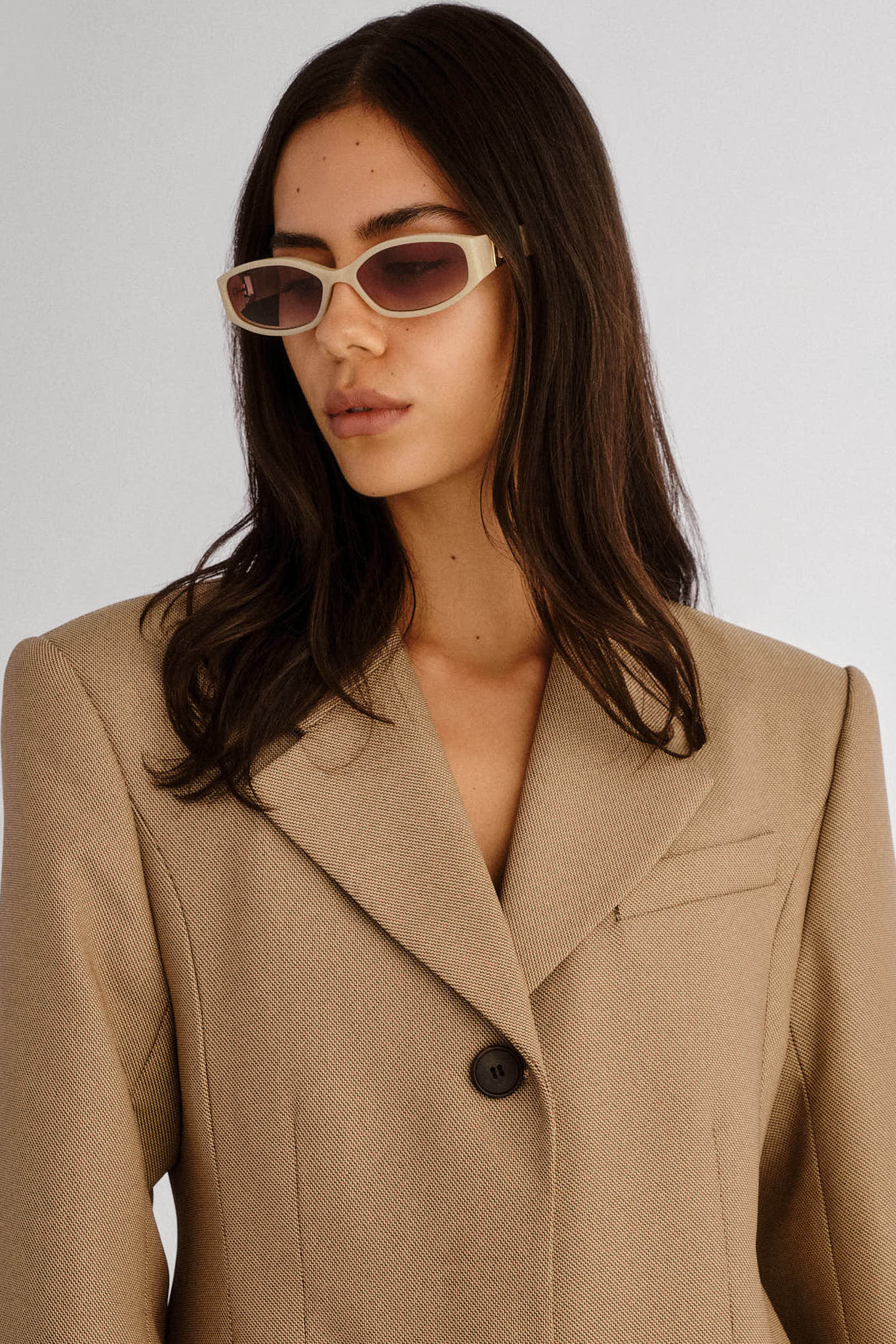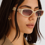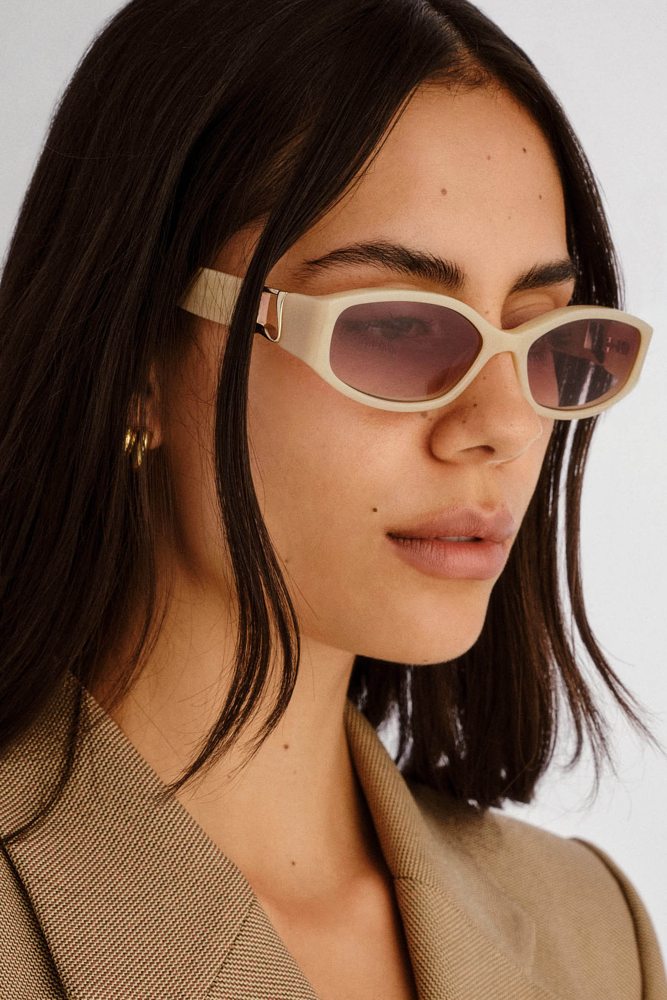 A refined take on a modern staple. This luxe rectangle frame features sculpted angles and polished gold hardware detailing at the temples. Understated yet striking, these sunglasses are designed for the girl with effortless style and a sharp eye for detail. Clean lines, timeless shape - made to go with everything.