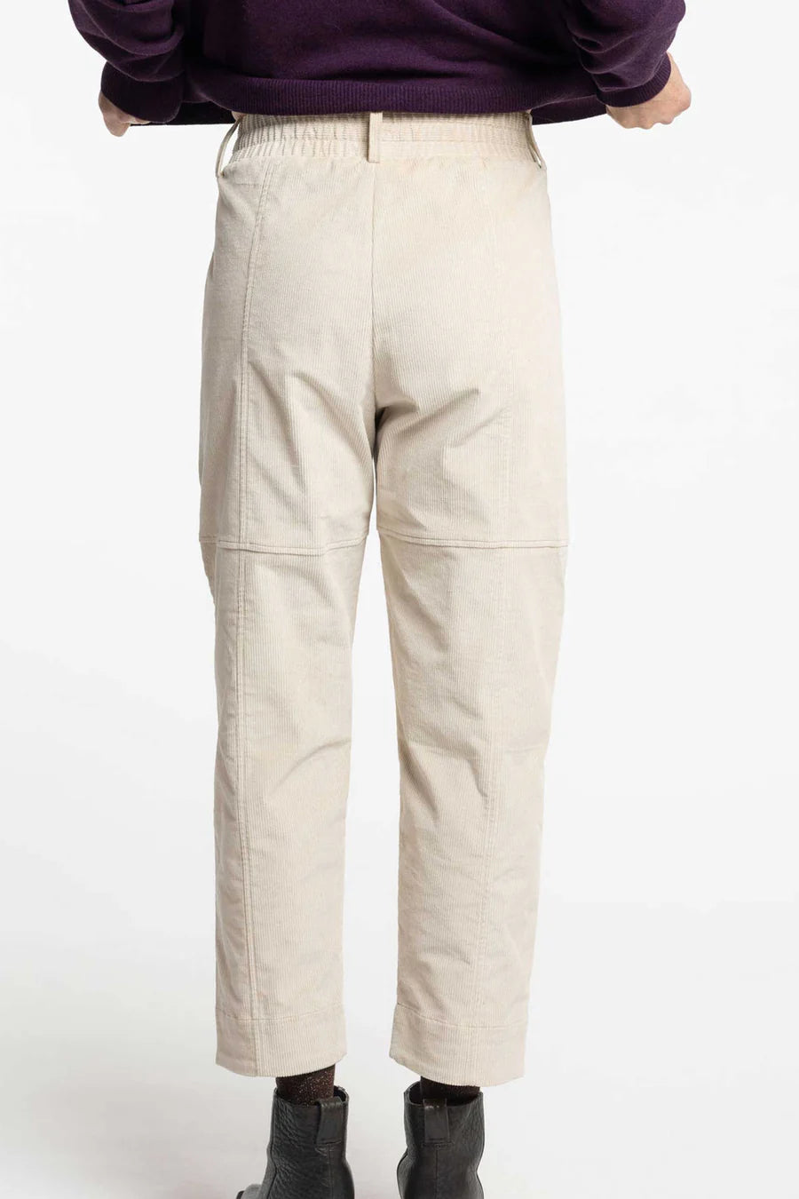 An elasticated waistband offers all-day comfort while maintaining a neat silhouette, complemented by practical patch pockets and considered seam detailing that adds subtle structure and interest. The easy fit makes them a versatile wardrobe staple, equally suited to casual styling with sneakers or dressed up with boots and layering pieces.