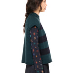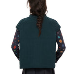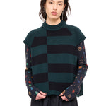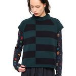 - Chunky vest- Cropped boxy fit- Cap sleeve- 3 gauge heavy knit- Crew neck- Contrast block colours