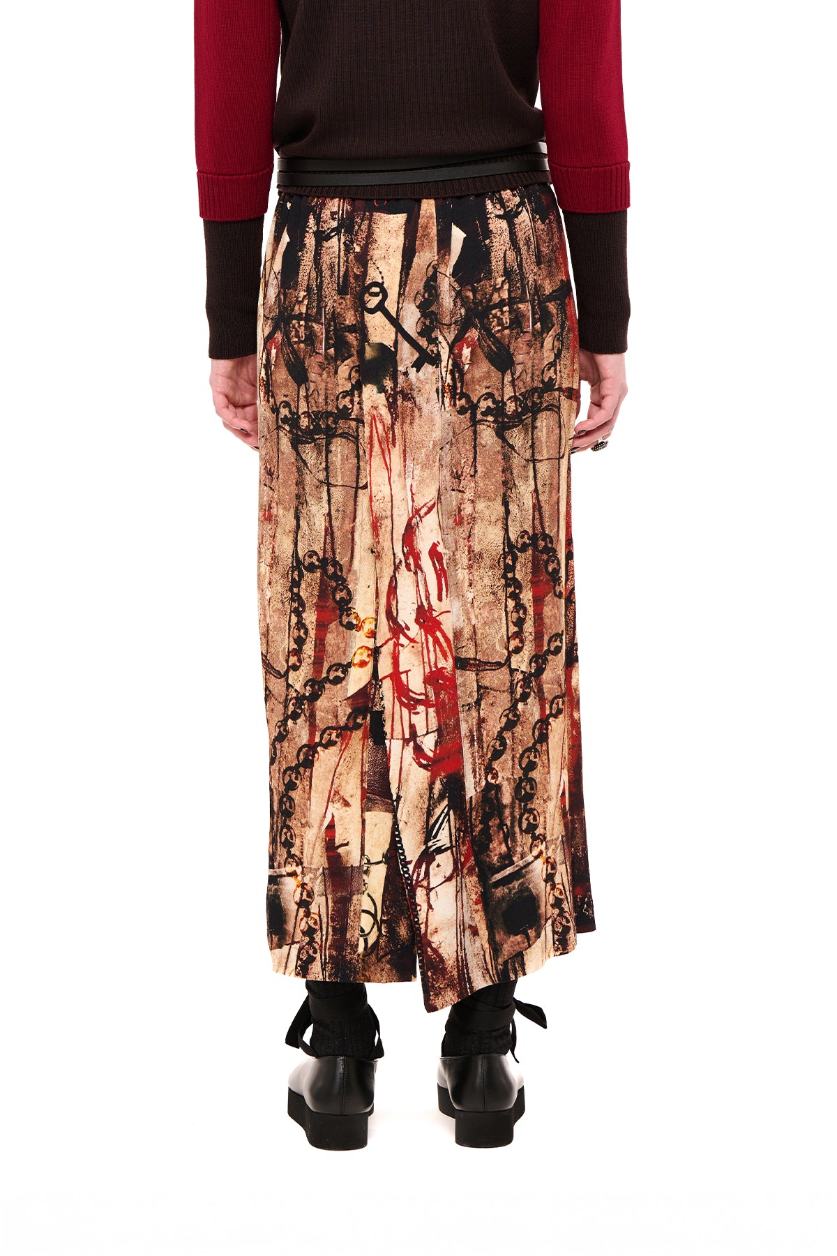 - Pleat can be worn to the front or back for mock wrap skirt look