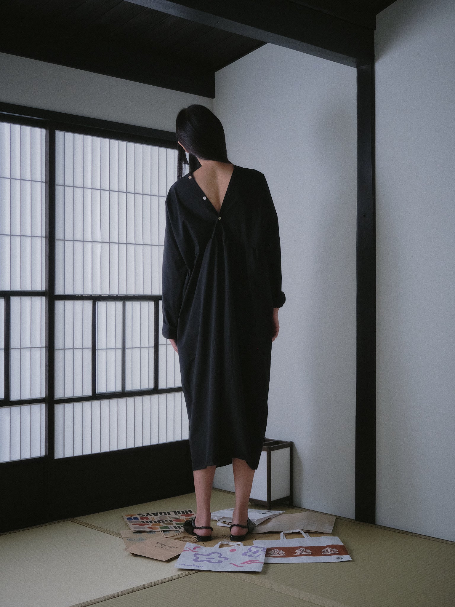 Size 1 Width- chest 72cm, hip gathered back, Length from shoulder to hem 125cm